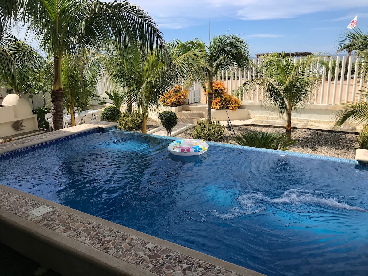 Selles rahulikus majutuskohas saad lõõgastuda kogu perega. maamaja Playa las Peñitasis, Marquelia Gro 's. Suurepärase merevaatega ranna ees oma basseiniga, palpa, grill, wifi, 6 magamistuba mahutavusega 22 inimesele