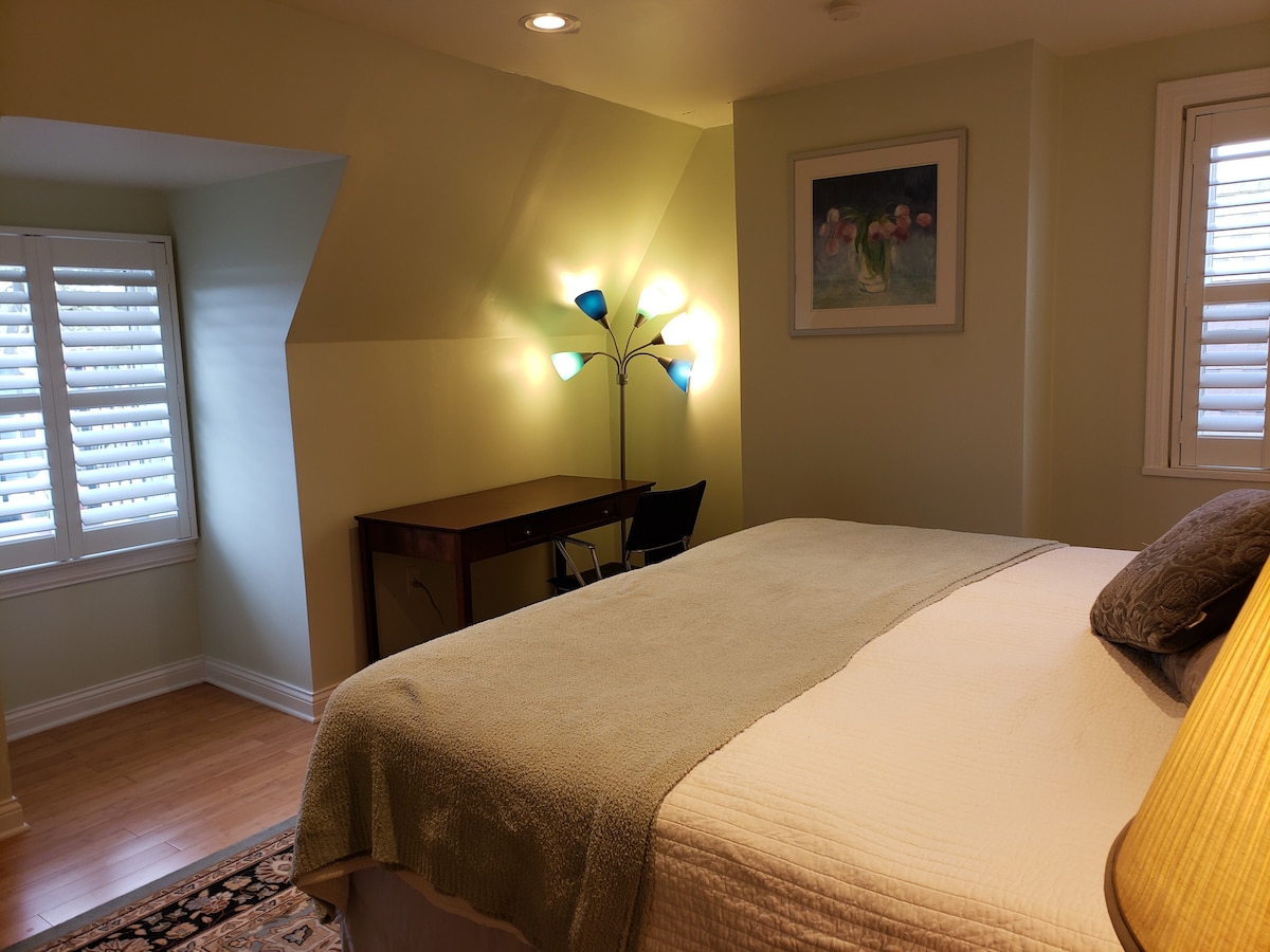 Sviidil on oma sissepääs maja taga ja parkimine sissesõiduteel. Sa oled oma PRIVAATSES piirkonnas, mis ei ole minu eluruumidega ühendatud; me ei kohtu tõenäoliselt kunagi. Majutuskoht on väga uuendatud ja puhas. Mugavuste hulka kuuluvad luksusliku dušiga vannituba, pliidi ja külmikuga miniköök, väike söögilaud, diivan ja mugav lai kaheinimesevoodi. See on umbes 15 minuti kaugusel kõigist peamistest ülikoolidest, kesklinnast ja kõigist spordihoonetest.