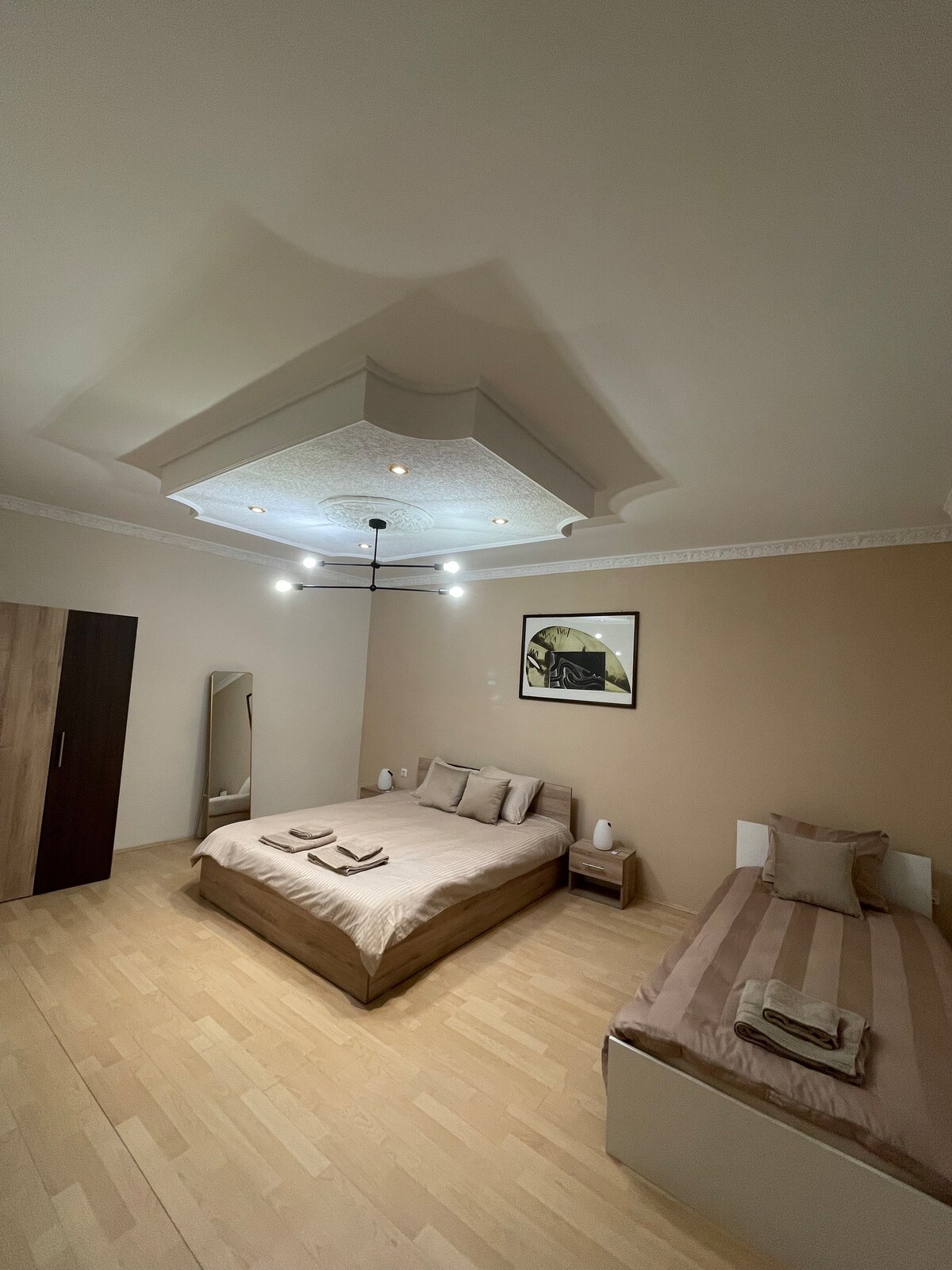 Uus, kaasaegne kahe magamistoaga korter 65 m ², mis asub 3 min jalutuskäigu kaugusel kesklinnast tasuta parkimisega. Hämmastav asukoht: ideaalne paaridele, üksikutele/ärireisijatele. Mugavalt mahub kuni 6 inimesele. Korteris on kaks suurt magamistuba suurte kaheinimesevooditega, vannituba koos vanniga, külaliste tualett, täielikult varustatud köök, täielikult varustatud köök, elutuba suure hubase kabrioletiga diivaniga, nutiteler, tasuta WIFI, pesumasin ja kuivati, rõdu, parkimine. Poed ja baarid/kohvikud korteri lähedal.