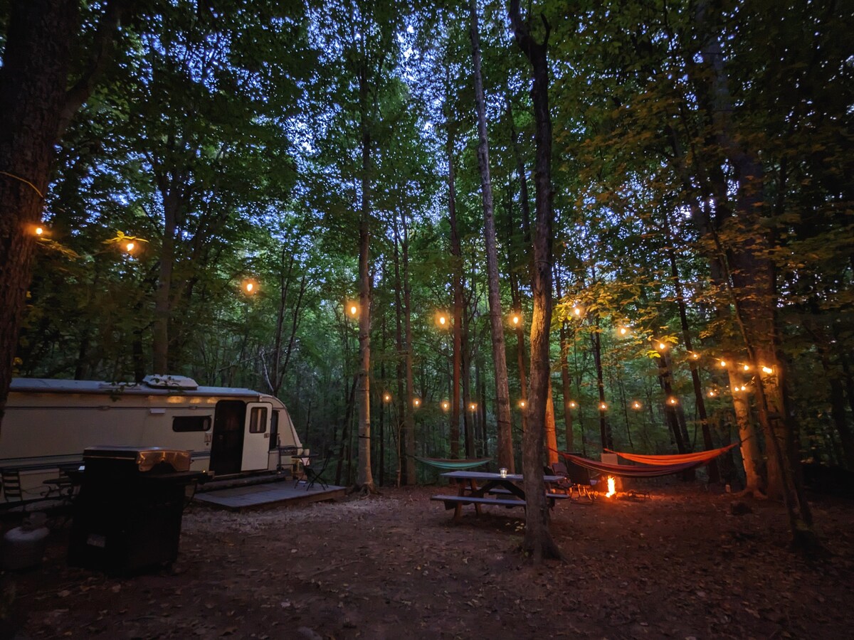 Lahuta end tavapärasest ja taasühenda oma sisemine laps Phantom Hilli nõiutud metsas! See privaatne kämping sisaldab võluvat võrguühenduseta matkaautot neile, kes ei taha täielikult kaasaegsetest mugavustest loobuda. Enamik sõidukeid saab kohale sõita, kuid madalaid sportautosid või luksussõidukeid ei soovitata. See on seikluslik sõit, nii et oota konarusi, kriimustusi ja järske pöördeid! Kui sa ei taha sõita, on see parkimisplatsist 15-minutilise jalutuskäigu kaugusel.