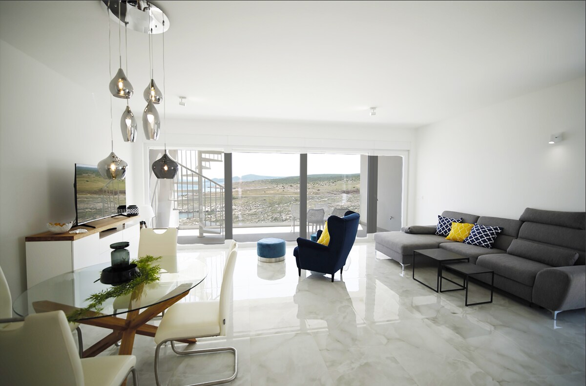 Moderni dvosobni Apartment "Cape" se nalazi u mjestu Rtina u blizini otoka Paga – na samo par minuta vožnje do Paškog mosta. Ovaj dizajnerski apartman ima sve što vam treba za mirni obiteljski odmor. Nalazi se u prizemlju te ima privatni ulaz. Prostrano dvorište je idealno za druženje dok uživate u zalascima sunca u jacuzzi-ju i promatrate najmlađe članove dok slobodno uživaju u igri u dvorištu.. Očarat će vas predivni pogled na more i obližnje otoke. Do Zadra vam treba oko 30 minuta vožnje.