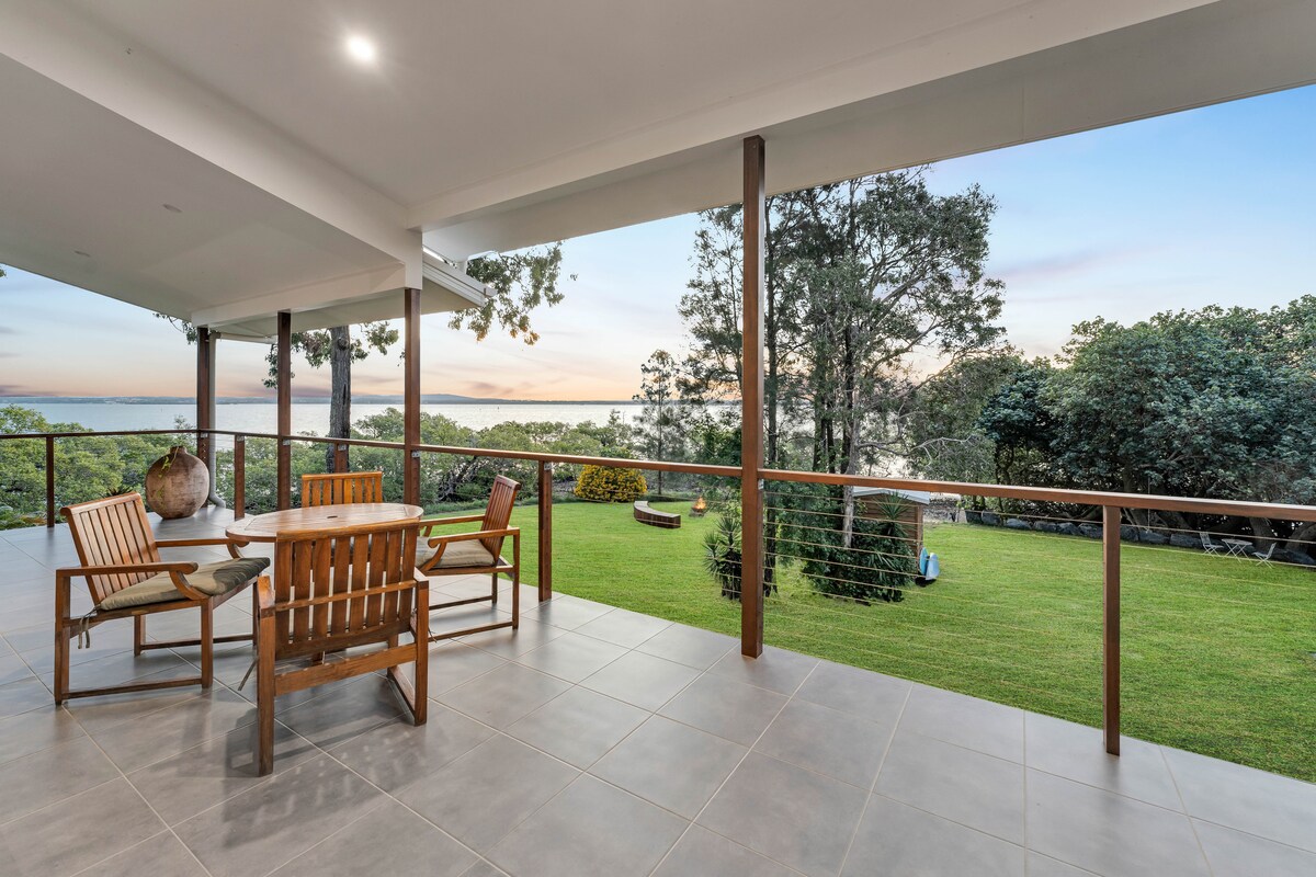 A spacious house with jetty and deep water mooring. 3 double beds, 2 singles and 2 pull out beds. Dogs welcome. Kick back and relax: fishing, kayaking, reading, playing games. IGA, butcher, bottlo and bowls club nearby as well as several cafe choices. 30 mins - 1hr by ferry ( walk-on or vehicle); enjoy a quiet island getaway with your own jetty and fabulous views. 2 bikes, kayak and crab pots are provided or just relax on the sun loungers on the deck.