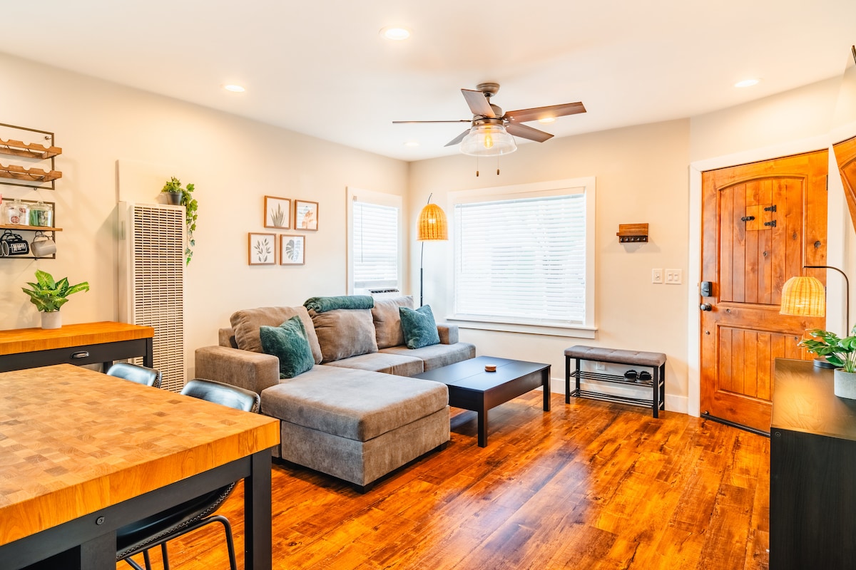 Chic, high-end finishes complete this fully remodeled home which exemplifies comfortable luxury. This 1 bedroom is spacious and perfect for a couple or business traveler. ○ 50” Roku Smart TV with basic cable and apps ○ Full kitchen with dishwasher, filtered water, ice maker, Keurig, cookware, bakeware, utensils, etc. ○Reserved garage parking (compact) ○Tiled bathroom with tub/shower, eco-friendly soaps ○Central heat & A/C ○Lots of natural light ○Walkable to restaurants ○Easy electronic lock