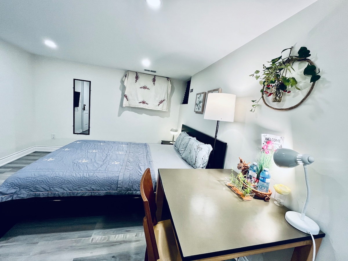 *Tasuta parkimine, *tasuta kiire wifi 500 Mbit/s, *Tasuta tervituspehme jook ! Ideaalne valik puhkuseks, õppimiseks või ärireisiks Torontos. Asub Mississauga kesklinnas, 5-7-minutilise jalutuskäigu kaugusel on Square One, Service Ontario, GO Transit, Sheridan & Mohawk College, Walmart, Loblaws, restoranid, kogukonna tegevused ja 6-minutilise autosõidu kaugusel UTM. Mugav juurdepääs QEV-le, 403, 407, 401 kiirteele; 15-minutilise autosõidu kaugusel Toronto rahvusvahelisest lennujaamast. 25-minutilise autosõidu kaugusel Toronto kesklinnast.