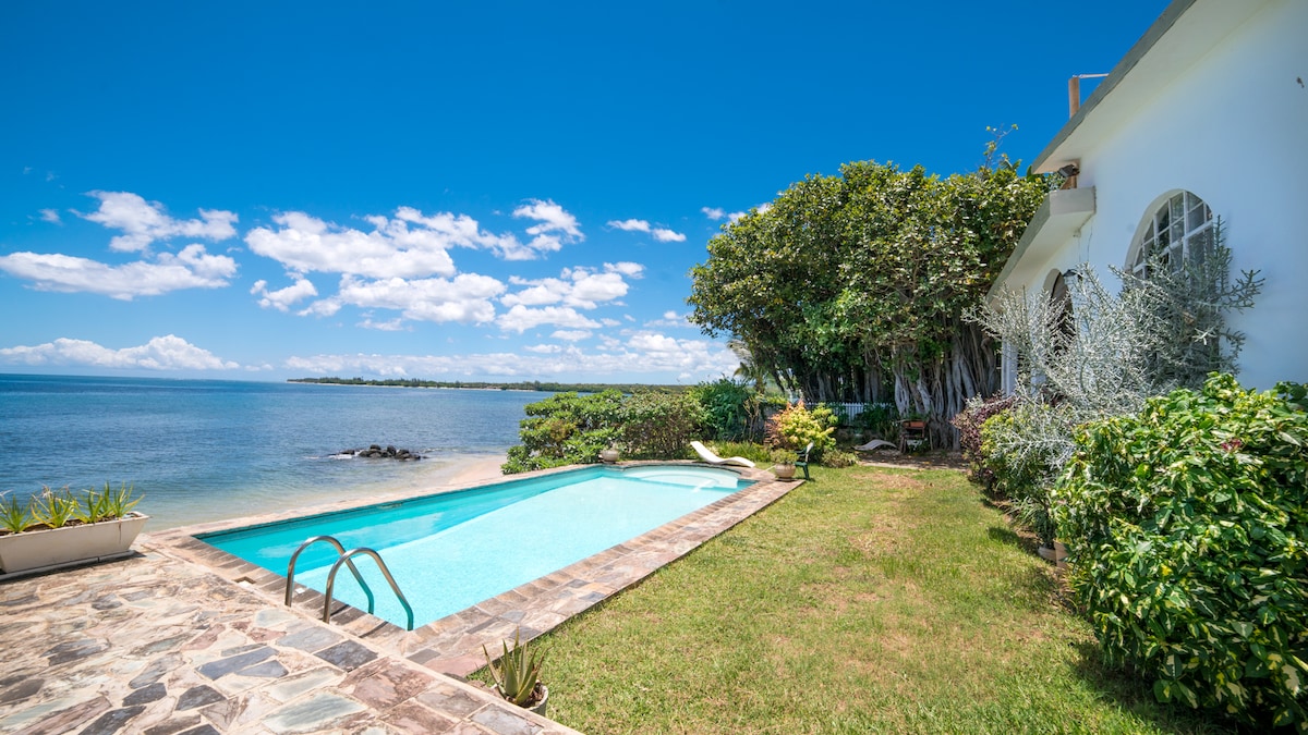Offering breathtaking and picture perfect view of the lagoon, beach and island of the South East of Mauritius, this luxury beachfront apartment is amazing for a great holiday with family or friends. Modern style furniture and decor, featuring 3 comfortable bedrooms with ensuite bathrooms, a spacious living area. Providing guests with a private garden where they can relax and enjoy a quiet evening enjoying a delicious barbecue, after spending the day lounging around the shared swimming pool.