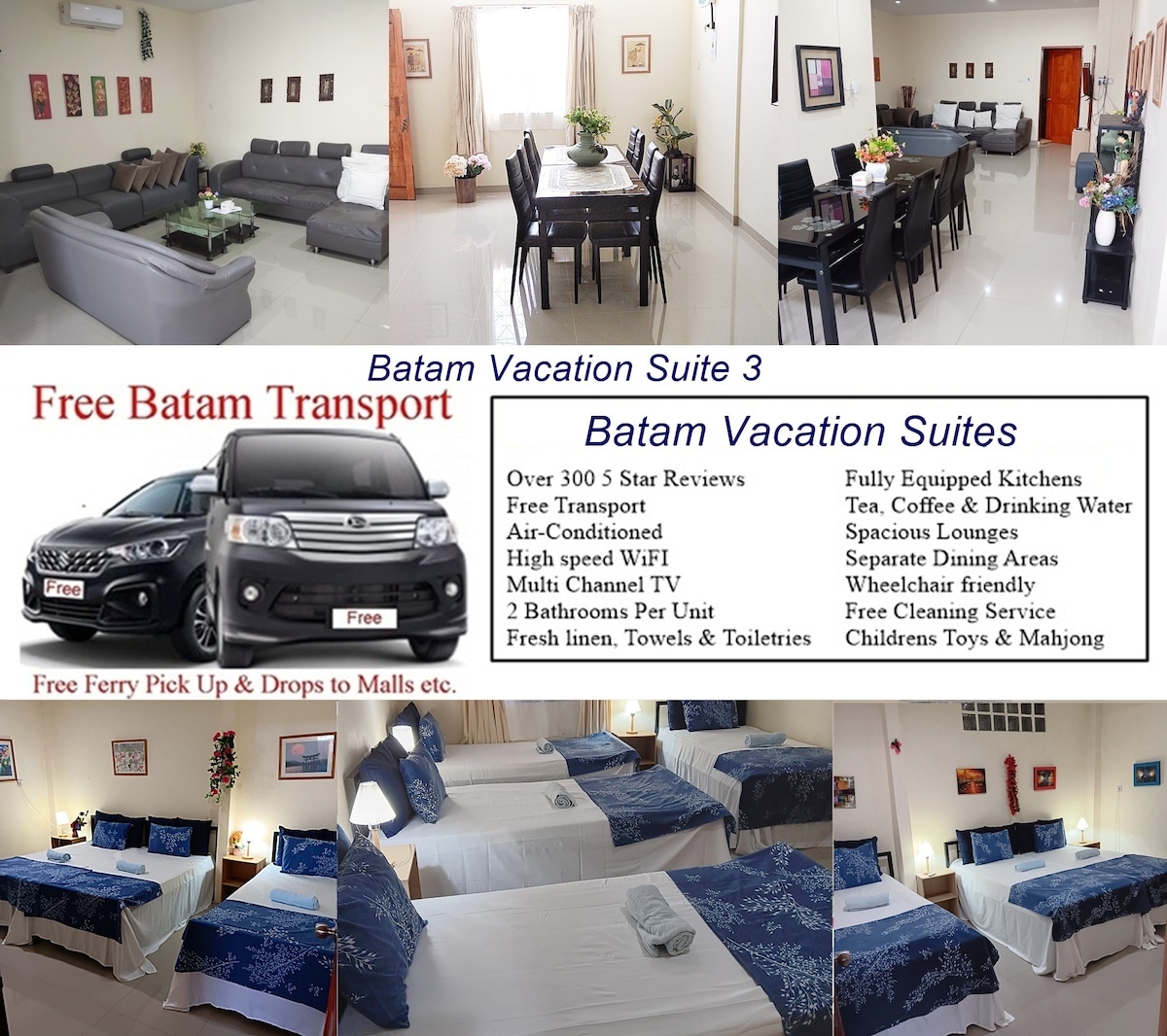 Superhost - 300+ 5 Star Reviews -Free Transport- Air-Conditioned - High speed WiFi - Multi Channel TV - 2 Bathrooms - Fresh linen, Towels & Shower Gel - Fully Equipped Kitchen - Tea, Coffee & Drinking Water - Spacious Lounge & Separate Dining Area. Wheelchair friendly - Free Cleaning Service - Childrens Toys & Mahjong Available Click the photo gallery & scroll for rooms & details Strategically located near malls, spas, food courts & restaurants More than 6 pax? Contact us about other suites