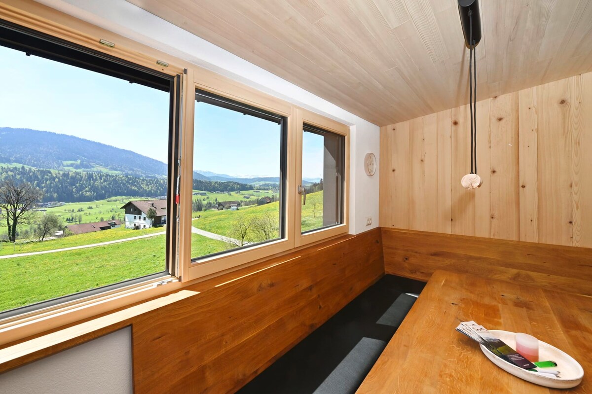Ein Tiny House und trotzdem ein großartiges Raumgefühl. Sehr idyllisch hinter einer Zimmerei gelegen, sorgen hier Wasserplätschern, Vogelgezwitscher und die allgäuer Kuhschellen für völlige Entspannung. Ein traumhafter Blick in die Berge und eine tolle Ausgangslage für viele Urlaubsaktivitäten machen diesen Platz aus.