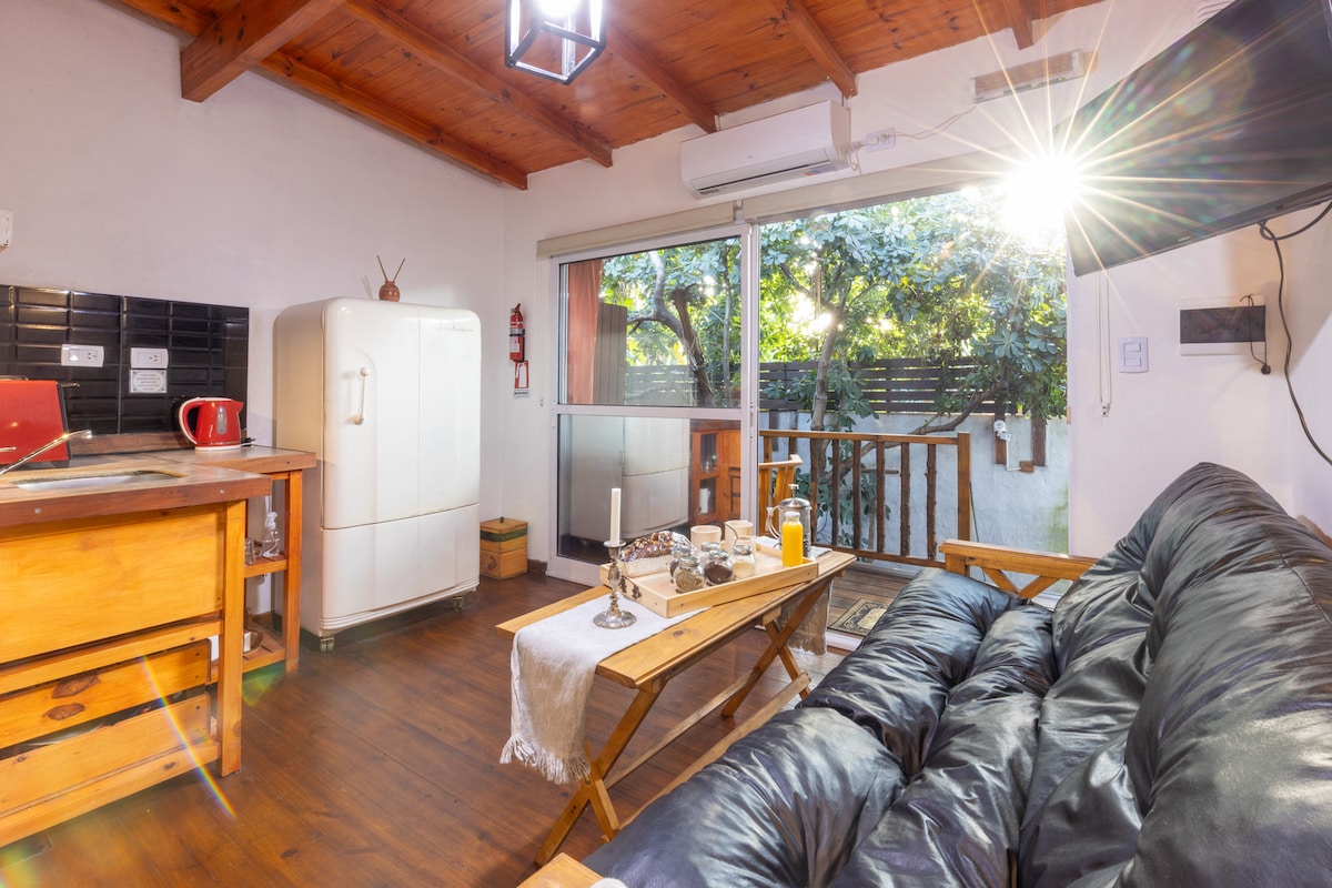 ÜÜRIMAJA kuni neljale inimesele Asub suures 1600 m2 pargis koos OMA DOKIGA. 25 min kaugusel Lancha taksoga või 1h kollektiivpaadiga Tigre jõe terminalist. Maja on varustatud selleks, et pakkuda sulle mugavust keset saart asuvas majutuskohas. Olemas on wifi, nutiteler ( Netflix. Youtube) Kliimaseade/madal, ventilaator. Täisköök. Diivanvoodi 2 magamiskohta Puuduvad rätikud ja voodipesu Avar 24 m2 kaetud terrass välise elutoa, kanuu , lamamistoolide, võrkkiige ja grilliga
