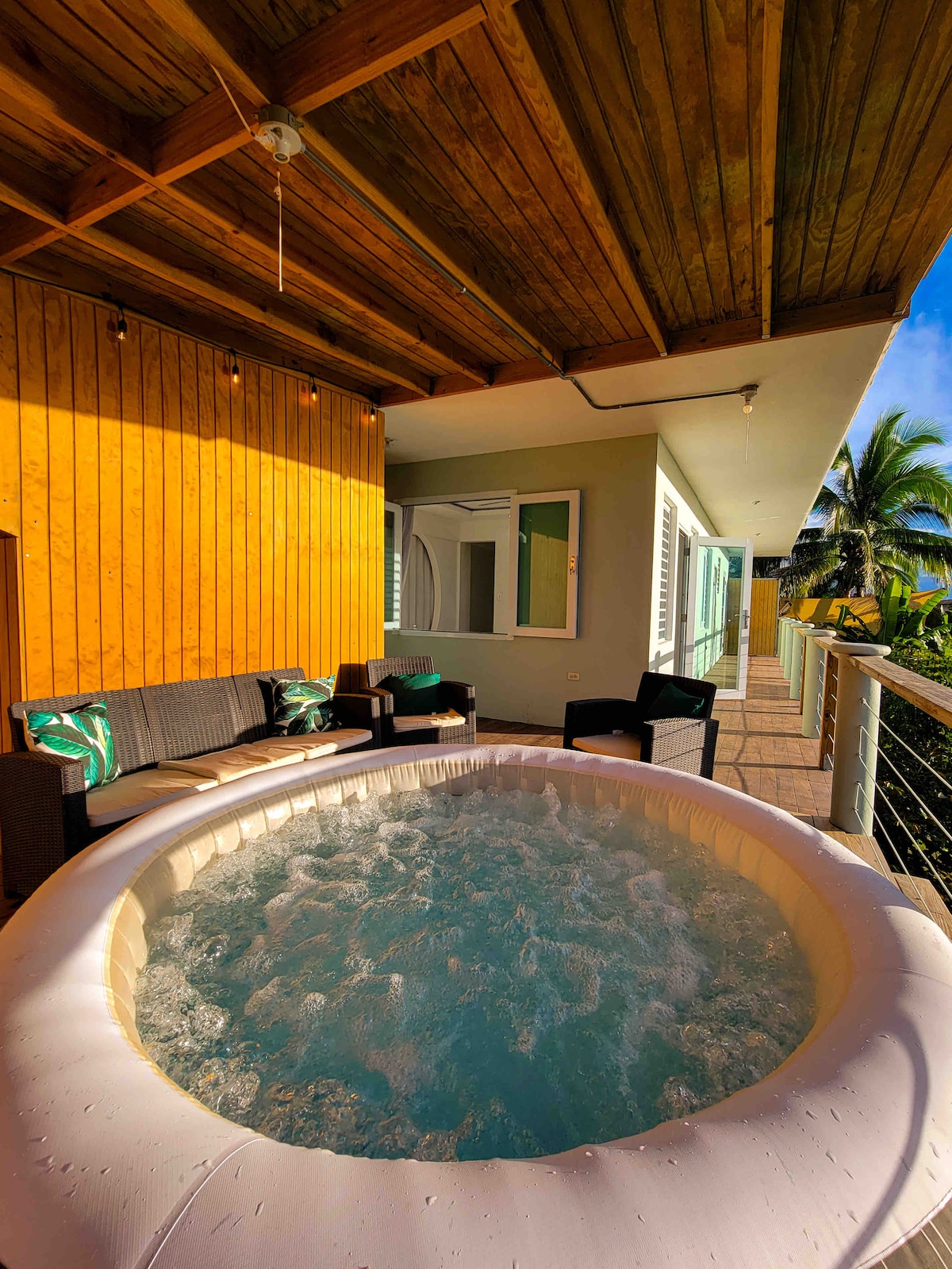 Stiilne, kesklinnas asuv ja täielikult varustatud Rinconis. Lähedal kõigele, kuid ideaalselt paigutatud rahulikule mangole ja lehmatalule. Mugavuste hulka kuuluvad ookeanivaade sinu privaatselt terrassilt, lai kaheinimesevoodi, Jaapani magamismatt lapsele, a/c, roku teler, täisvarustusega köök, vann ja rannatarbed, värsked puuviljad. Kui oled valmis oma majutuskoha mugavustest lahkuma, on see lühikese autosõidu kaugusel rannast, restoranidest ja tuletornist.
