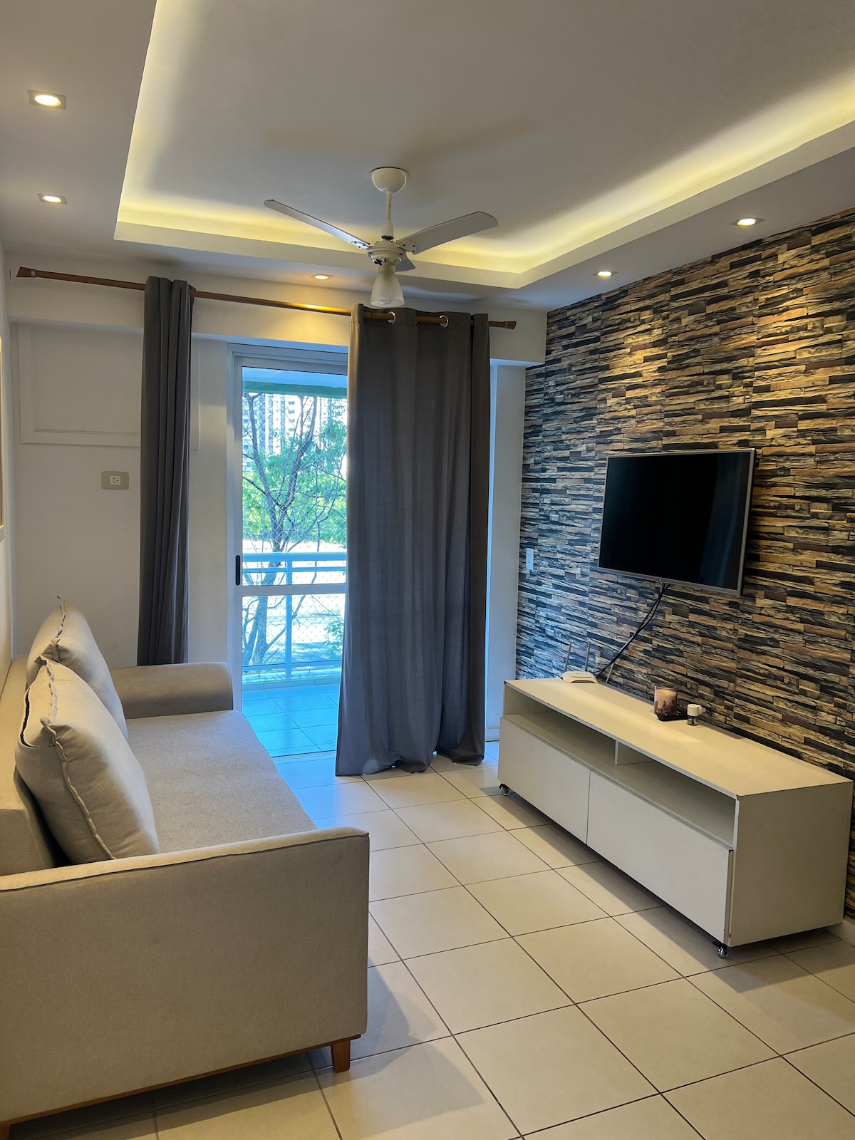 PEREKOND/ÄRI kuni kolmele inimesele. 1 LAI KAHEINIMESEVOODI ja 1 DIIVANVOODI. Rõdu vaatega basseinile ja mägedele. Internet 250MB,garaaž, bassein,jõusaal, saun, miniturg, vastuvõtt, uksehoidja ja ööpäevaringne valve. Air cond.(1), TV SMART (2), köök elektripliidiga 2 suud,külmik, mikrolaineahi, kohvimasin ja võileivamasin. Eksklusiivne juurdepääs poodidele restoranide,pankade,pesumaja, ilusalongi, poodide,apteegiga. Projaci,Rio Centro,Olympic Prqi ning Barra ja Recreio randade lähedal.