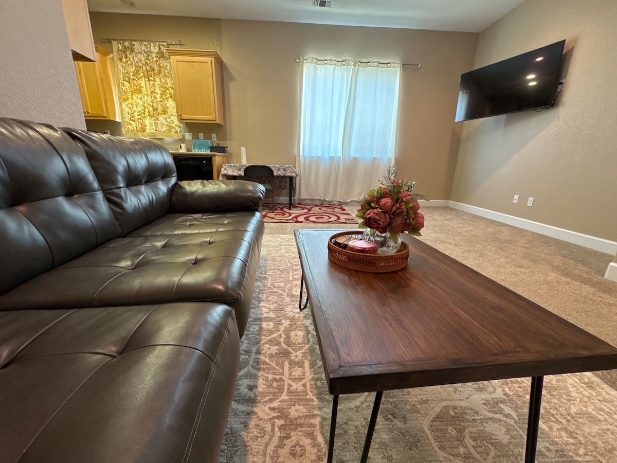 Come relax at our lovely cottage in a rural country setting w/ ample parking! Built in 2013, our studio apartment is 1,100 square feet & includes a full kitchen, dining area, spacious bathroom w/ shower, queen size bed w/ deluxe comfort foam mattress & additional deluxe air mattress, 2 huge Smart TVs w/ DirectTV, surround sound system, & WiFi. Our kitchen is stocked for all your cooking needs. Nearby you'll find shopping, restaurants, & freeway access. Book now while we have availability!