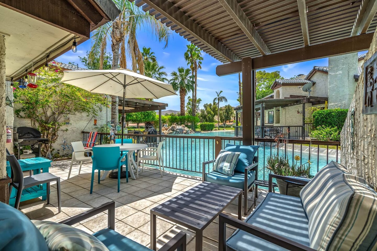 Tere tulemast oma Island Away-Seasisse! Troopiline minimaalne ja vihje sajandi keskpaiga kaasaegne Mango maja annab sulle kabana õhkkonna, mida vajad igapäevaelust lõõgastumiseks. Ideaalselt Palm Springsi (20-25 min sõidu), Coachella oru (15 min sõidu) ja Joshua Tree vahel, mis on 40-minutiline maaliline kruiis, lõõgastu terrassil, nautides samal ajal kaunist vaadet järvele vastu kõrbemägesid. Sul on täielik juurdepääs kõikidele puhkekeskuse mugavustele, sealhulgas tervendavatele basseinidele, jõusaalile ja muule!