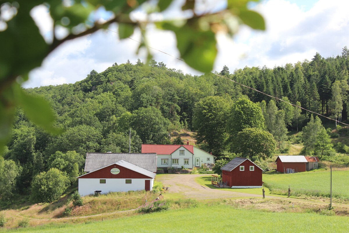 Gästhuset har dubbelsäng. På sov-loftet finns en liten dubbelsäng och en spädbarnssäng. Liten dusch och toa samt ett trinettkök fullt utrustat samt kyl. Ett altandäck på gästhusets kortsida kommer du till genom en stalldörr inifrån carporten. Där finns en Gasol-grill. Utsikt över bokskogen och vår hönsgård. Lakan och handdukar ingår. Städning ingår.