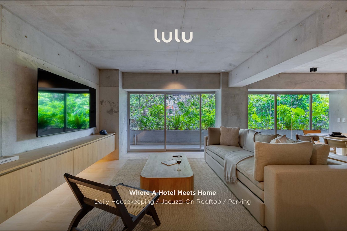 Welcome to Lulu Condesa, your new favorite home in Mexico City. This exclusive residence features elegant two and three-bedroom apartments, each designed with private balconies in every bedroom, abundant natural light, and sophisticated interiors that blend premium finishes with modern comfort. Each apartment is fully equipped for a seamless stay, offering a complete kitchen, laundry area, spacious living areas, and everything needed for both short and extended visits. Guests also enjoy premiu
