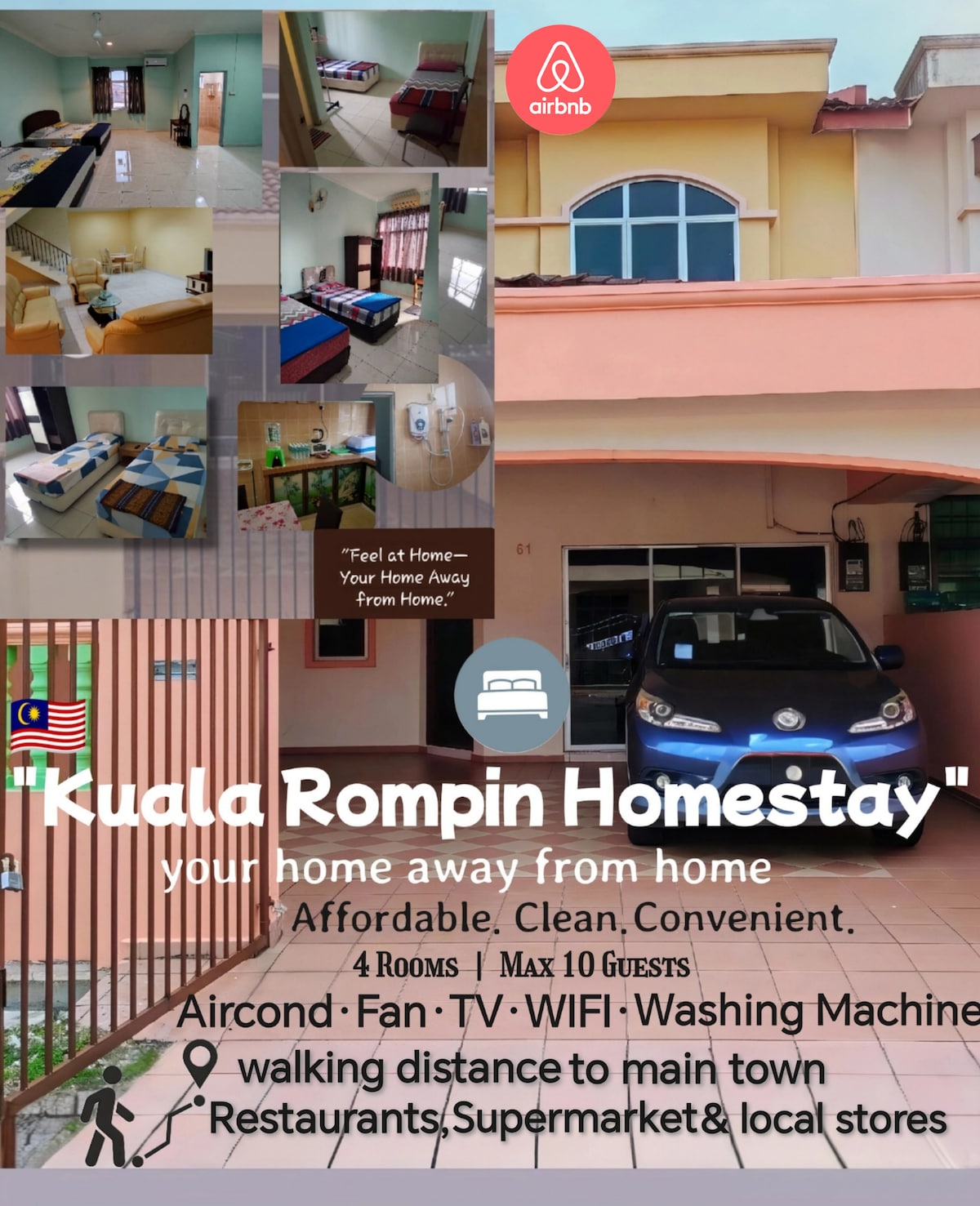 Muji-inspireeritud kodumajutus, mis sobib kõige paremini pere ja sõprade kogunemiseks. Samuti on olemas avarad ühiskasutatavad ruumid ühendustegevusteks. Strateegiline ja mugav asukoht: - jalutuskäigu kaugusel toidupoest ja 7-elevenist - jalutuskäigu kaugusel Hiina restoranist ja lääne bistroost Avarad tasuta parkimisalad, sh privaatne garaaž, et tagada auto turvalisus. Täielikult konditsioneeritud maja mugavustega nagu: - Veesoojendi -niiskuskuivati - Pesumasin - Külmik - söögiriistad - Lauamängud