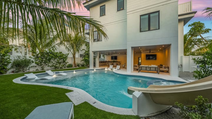 See majutuskoht on ehitatud alates asukohast ja ainulaadsest teenindusest kuni pakutavate mugavusteni, alustades välistest meelelahutusruumidest kaetud terrasside, basseiniala, rõdude ja katuseterrassiga. Basseiniala on Florida paradiis, kus on ülisuur puhkekeskuse stiil, soolase veega soojendusega bassein ja spaa, kus on ekspansiivne päikeseriiul, mullid ja tuled ning vesiliumägi! Kattega terrassil on mitu nutikat telerit, istekohad ja söögituba ning väligrill (maagaas). Komplektis on ka putt-putt ja ping-pong. Kõik see asub aiaga ümbritsetud tagahoovis, mis on täis lopsakat kohalikku maastikukujundust privaatsuse ja turvalisuse tagamiseks. See on peresõbralik ja sobib ideaalselt majutuskoha lemmikloomasõbralike eeskirjadele (kehtivad tasud ja piirangud). Ülalolevatele korrustele minnes leiad sealt mitu rõdu ja katuseterrass, kus on istekohad ja suurepärased vaated Mehhiko lahele, Lido Key Beachile, St. Armand's Circle 'ile ja Sarasota kesklinna silmapiirile.