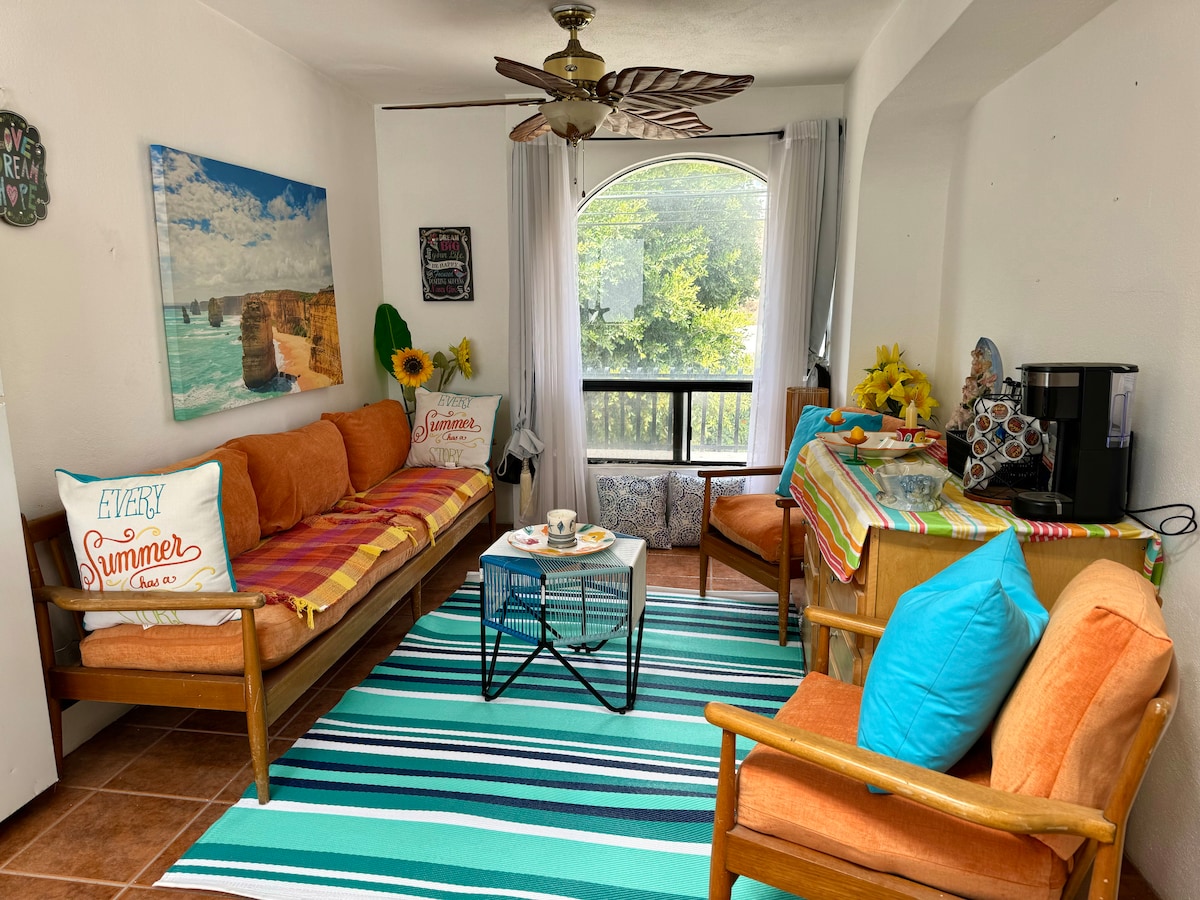 See mugav stuudiokorter San Diegos on ideaalne koht vaikseks ja hubaseks nädalavahetuse puhkuseks. Sees on valgusküllane ja kutsuv stiilse ruumika stuudiokorteriga, eraldi sissepääs külgväravalt, privaatne terrass grilli ja rippuvate võrkkiikedega; sissesõidutee parkimiskoht ja palju tänaval parkimist! Vaade terrassilt on väga lõõgastav, mistõttu on see ideaalne nädalavahetus. Kesksel kohal vaikses ja rahulikus piirkonnas 5 minuti kaugusel Plaza Las Americasest ja 10 minuti kaugusel CBX-ist.