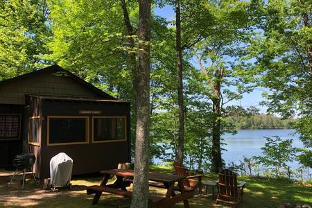 Surrounded by trees, settled right on Lake Hayward sits this charming & cozy cabin in a little cabin community less than half a mile from downtown Hayward. Launch your canoe just steps from the cabin's entrance, bike into town for lunch, or go hiking or skiing on the nearby trails, this cabin is nestled in the perfect location! This is a studio size cabin with one queen bed and a bunk bed with 2 twin mattresses, bathroom, kitchenette with a fridge, microwave, Keurig coffeemaker & outdoor grill.