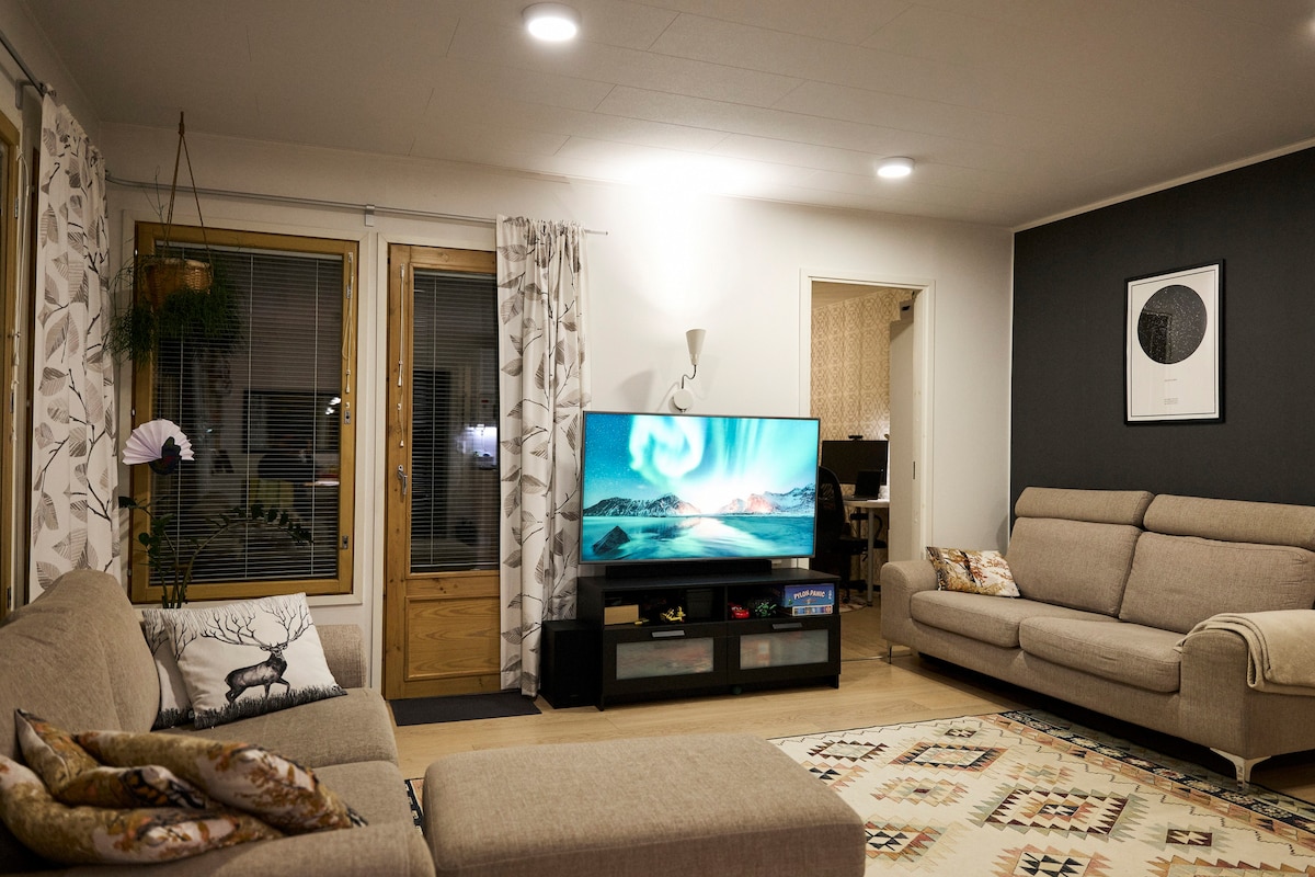 Lõõgastu selles kaasaegses, hubases ja avaras korteris (73 ruutmeetrit), kus on 2 vannituba rahulikus keskkonnas. Maja on ehitatud 2022. aastal ja täielikult varustatud. Lennujaama 6 kilomeetrit (3,7 miili). Jõuluvana külla 4,5 km. Lähim toidupood 2,5 km.