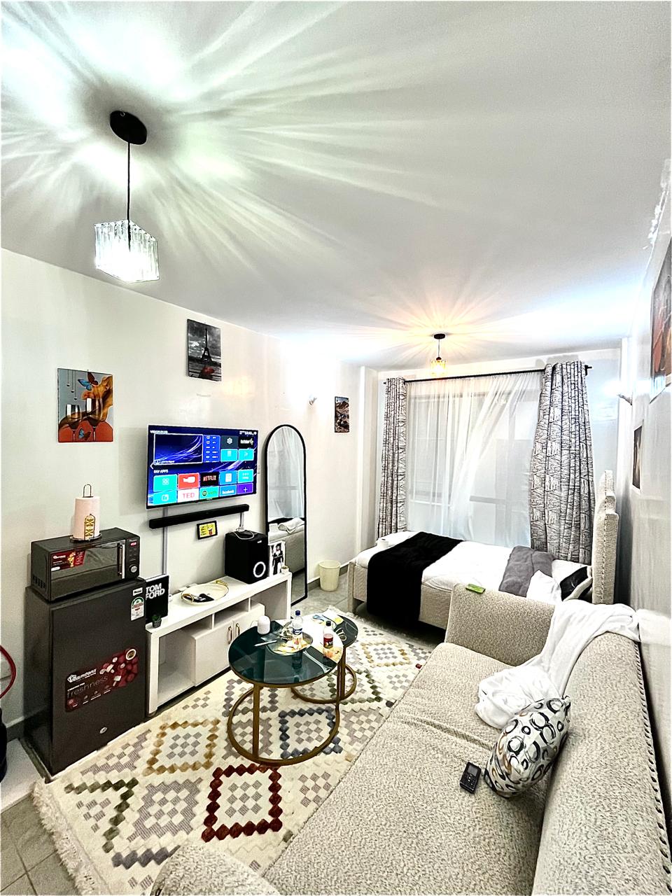✅ Modern & freshly completed; Tastefully furnished and very clean. ✅ Appox 5 min drive from Thika Road Mall. ✅ Perfect for small group or family looking for value for money. 24/7 Reception & Concierge Service ✅ ✅ Enjoy free WI-FI landed with fiber optic. ✅ Free Basic Cable tv(DSTV) & Netflix. ✅ Premium Dstv available on demand payment. ✅ 24/7 professional security. ✅ CCTV Security camera's. ✅ Secured ground floor car parking!