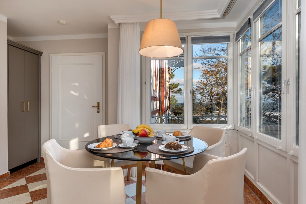 Ulatuslikus korteris on pindala 64 m ². Tal on idülliline lodža hubase söögitoaga ja suurepärane vaade Läänemerele. Rannatool, Mai-Sep., esimene mereliin. Elutuba lameekraaniga televiisoriga, kamin (elektriline), wifi, diivanvoodi, eraldi köök ja kööginurk, söögituba (nõudepesumasin, külmik külmikuga, 2-põletiga pliit, mikrolaineahi, veekeetja, kohvimasin, röster, nõud), magamistuba kaheinimesevoodi ja garderoob, vannituba, WC, külaliste WC, föön.