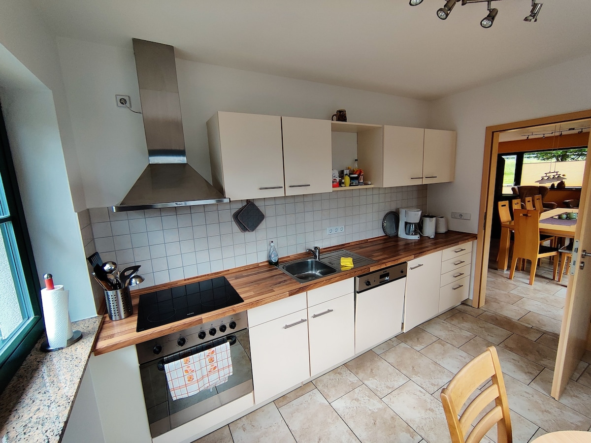 Hubane suvila keset Thüüringi Schiefergebirge 'i. Künkal, kust avanevad suurepärased vaated kitseharja metsadele. Suur köök( varustatud nõudepesumasina, ahju, külmiku, sügavkülmikuga) söögitoaga, kus on piisavalt ruumi. Elutuba teleriga. Suur vannituba. Ülakorruselt leiad magamistoad ning duši ja tualetiga vannitoa. Suurepärane, suur terrass keedupotiga. ( soojendatav) Parkimine majutuskoht.( Lisateavet leiad)