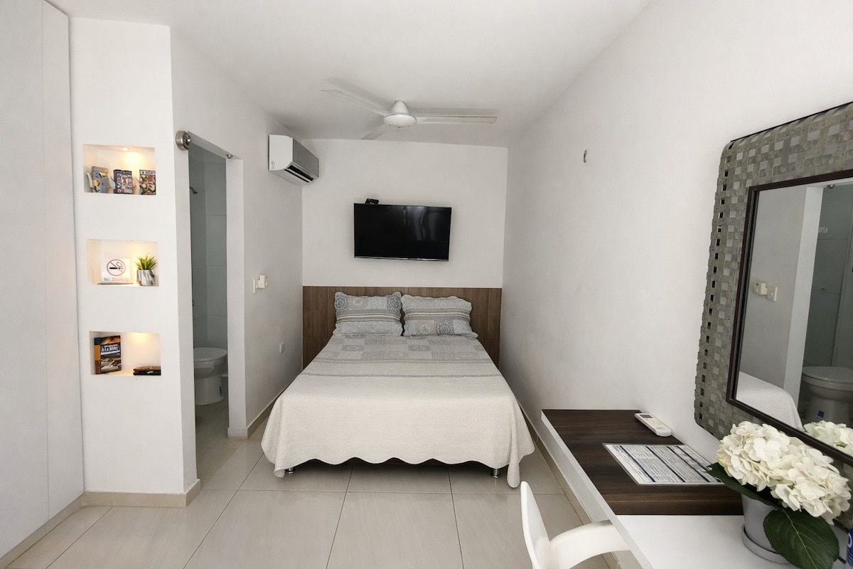Mugav ja ilus korter, 2 magamistuba, igas magamistuba, privaatne vannituba ja AA. Peamine tuba kaheinimesevoodiga (teine kaheinimesevoodi allpool) ja teisene tuba, kus on kaks üheinimesevoodit (veel 2 üheinimesevoodit allpool). Täielikult varustatud köök. Elutuba ja stuudio AA-ga. Kiire wifi ja kaablisignaal 3 Nutikas teler. Hoone basseini ja jõusaaliga. Turvaala. Pane tähele, et pead enne saabumist saatma oma dokumendid (Colombia seadused).