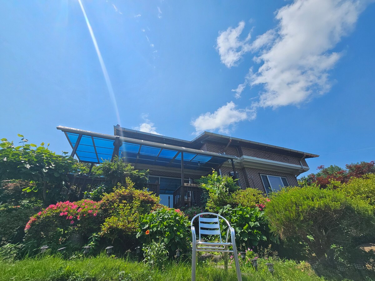 See asub Georim Village 'i ülemistes mägedes, millel on selge õhk ja lahe vaade, ning aias on keskkonnasõbralik hooajalised köögiviljad, kus saad valida otse suurest murust. Suvel arvan, et see on parim perepuhkekoht, kus sa saad suures hoovis välibasseinis lahedalt mängida, puude vahel lõõgastuda ja grillida grillitud sealiha. Bluffid ja kultuur ning Cheongma kirjandusmuuseum, millel on ajalugu ja kultuur.Cheongnyeongjeong, Sanbangsani mäge ja Sanbangwonit ihaldavad paljud inimesed ja lähedalasuva Cheongmade 'i õhtu sügisel on kosmos täielikult olemas. Kui siia tuled, võid puhata hea puhkeaja, kus saad paraneda lisaks puhtale loodusele ja läheduses asuvatele vaatamisväärsustele ringi liikuda. Külalistega saad igal ajal suhelda telefoni teel (010 3861 2415) ja tekstsõnumiga.