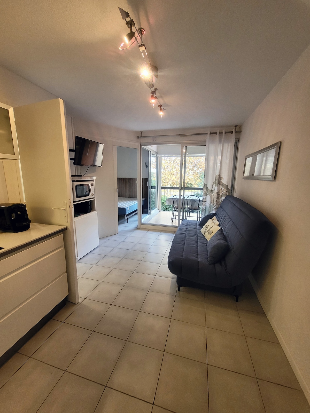 Kena stuudio /väga puhas korter turvalises elukohas, 250 meetri kaugusel rannast ning kõigi poodide ja turismibüroo lähedal. 4. korrusel liftiga, takistusteta vaade. Kliimaseade. Privaatne / turvaline parkimine. Magamistuba kahe garderoobiga, elutuba ja suur garderoob. 6-meetrine terrass 2 .Cuisine . Vannituba / dušš. Pesumasin. Intermarché , turismibüroo ja lähedalasuvad poed. Väga hea asukoht. Saadaval on 2 jalgratast.