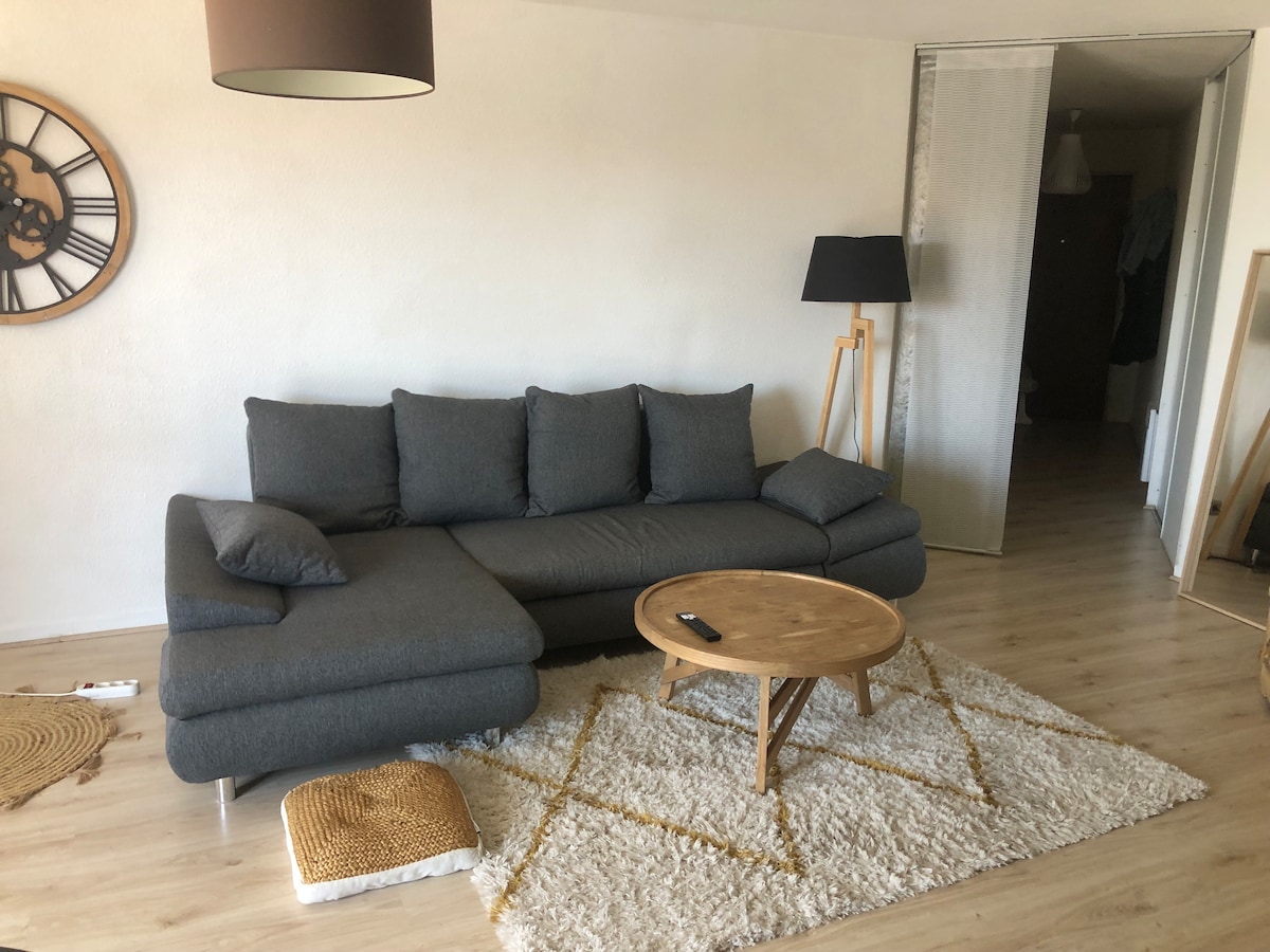 Naudi seda rahulikku ja keskset majutuskohta. 1. ja viimasel korrusel, T2 65 m2 täiesti uus ja varustatud, väga vaikne Mugav: privaatne parkimine. Kuulutus: - Täisvarustusega köök - 3-kohaline diivan ja teler (wifi) - 1 magamistuba 1 voodiga (140x190), suur kapp Voodilinad ja rätikud olemas - 1 vannituba Itaalia dušiga - 1 pesumasinaga sahver - Terasse 11 m2 Lähedal asuvad poed Asub 10 minuti kaugusel Perignanist, 7 minuti kaugusel lennujaamast, 25 minuti kaugusel randadest, 40 minuti kaugusel Hispaaniast