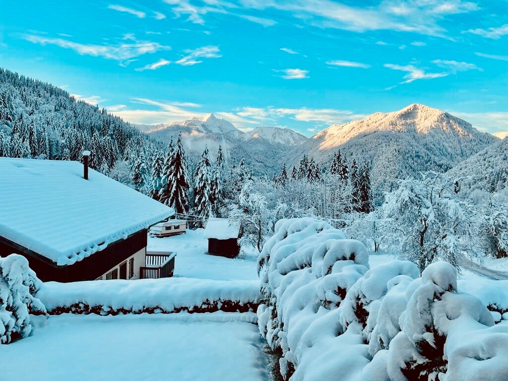 Nous sommes heureux de vous accueillir dans notre adorable petite maison/ ancienne remise maçonnée entièrement rénovée et réaménagée avec soin mi 2021. Belle terrasse sud ombragée l’après midi, vues vraiment magnifiques et dégagées vers le Mont- Blanc, les aiguilles de Chamonix, « au pied » du glacier des Bossons en face. En retrait de 20m de la route dans un quartier résidentiel. Transports à 2 pas. 2 places de stationnement devant la maison. Wifi. Pas de TV.