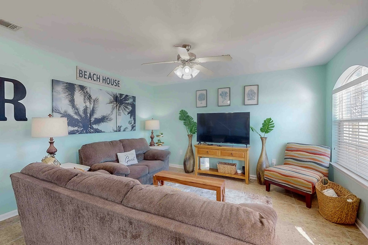 Me oleme lemmikloomasõbralikud!!! Sinu pere on lähedal kõigele, kui peatud selles kesklinnas asuvas villas. Kõik, mida pead kaasa võtma, on ujumisriided, rannatoolid ja liivaämbrid ! Vaid mõne minuti kaugusel rannast ja jalutuskäigu kaugusel kesklinnast Võlvlaed ja avatud põrandaplaan. Telerid on igas toas, täielikult varustatud köök koos mikseri ja Keurigiga järgmisel hommikul! Avatud kaetud esi- ja tagumine veranda, mida täiendab laagri stiilis grillimine täielikult tarastatud tagahoovis.