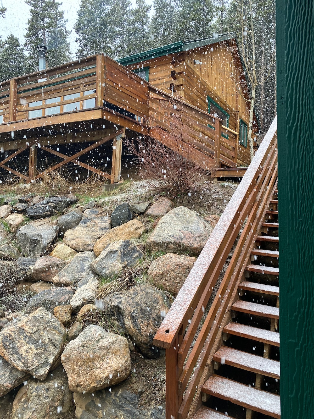 Avar 995 ruutjalga. 2 magamistuba 1 vannituba korter. Pakub aastaringselt juurdepääsu kõigele õues. Ühendatud matkamise , jalgrattasõidu, džiibimise, telkimise, kalapüügi (100 jardi kaugusel), kajakisõiduga. Ka kärestiku lähedal. Wifi, nutikas teler. Telerid magamistubades ja elutoas. ** *Talvekuudel on nõutav nelikvedu *** Asub mägedes 10 000 jala kõrgusel, seega on 9 miili autosõitu mööda hästi hooldatud maakonna kiirteed Idaho Springsi. Vt põder, must karu, hirv, Bobcat.