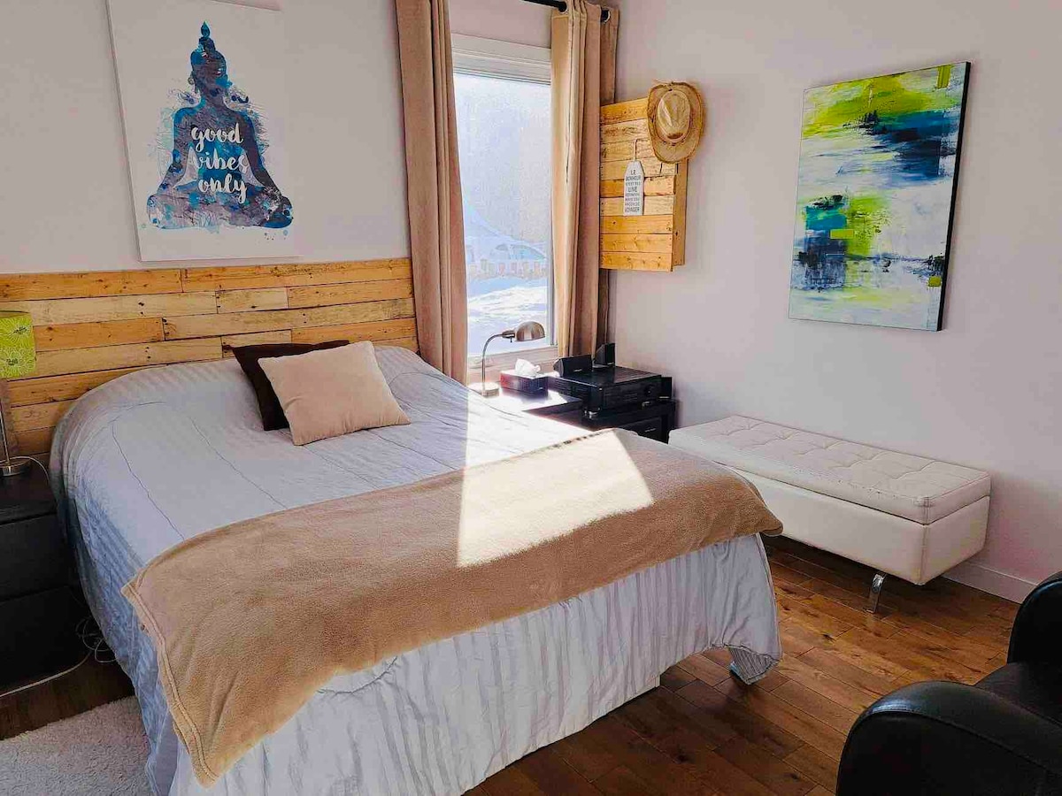 Lõõgastu ja lõõgastu selles rahulikus ja stiilses majutuskohas keldris, kuhu on privaatne juurdepääs. Korter asub Quebeci linna lennujaama ja kaubamajade lähedal. Tänu nurgas asuvale ühistranspordile on sul juurdepääs ka kõigile festivalidele. Meeldivama kogemuse pakkumiseks on tehtud mitu nüanssi. Hästi varustatud töökoht + kiire internetiühendus (1 Gb/s) = parim koht kaugtööks:) Lõbutse!