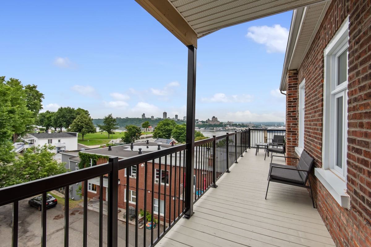 UUS AIRBNB-S! OMG! Konditsioneeriga! Uskumatu vaade Château Frontenacile ja jõele kõigist akendest!!! Tasuta privaatne parkimine! Uus korter, sisustatud ja möbleeritud kõrgel tasemel. 10 jala kõrgune lagi. 2 magamistuba, laiad voodid, uued kvaliteetsed voodipesud ja madratsid. Täielikult varustatud köök. Nespresso kohvimasin. 5-minutilise jalutuskäigu kaugusel parvlaevast, mis on 12-minutilise ülesõidu kaugusel Quebeci vanast sadamast! Tänava lõpus (peamine) vana Lévis! Unistuste korter!!!
