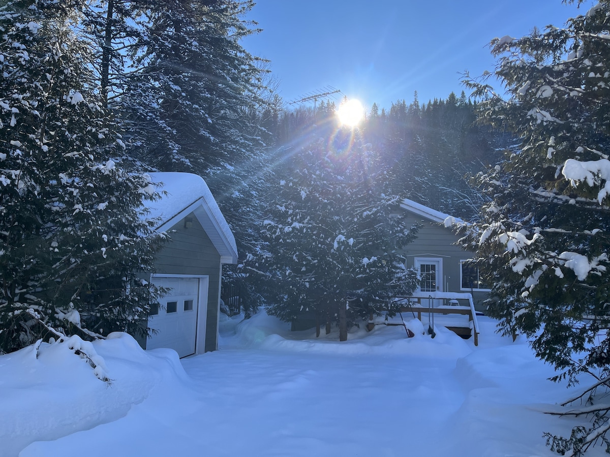 Small moderne warm Cottage! Come relax, unwind and fully rest! Be surrounded by several pine trees. This cottage can greet 2-4 adults (+1 child). You have WiFi and electric fireplace. Its time to disconnect from your daily life with its SPA as well as an outdoor GAZÉBO to fully enjoy it while watching the beautiful views of the mountains! Fishers, snowmobilers and ATV’s its the ideal place for nature lovers. Motorcyclers you will enjoy the road! Access to the river is a 5 min walk! Book Now