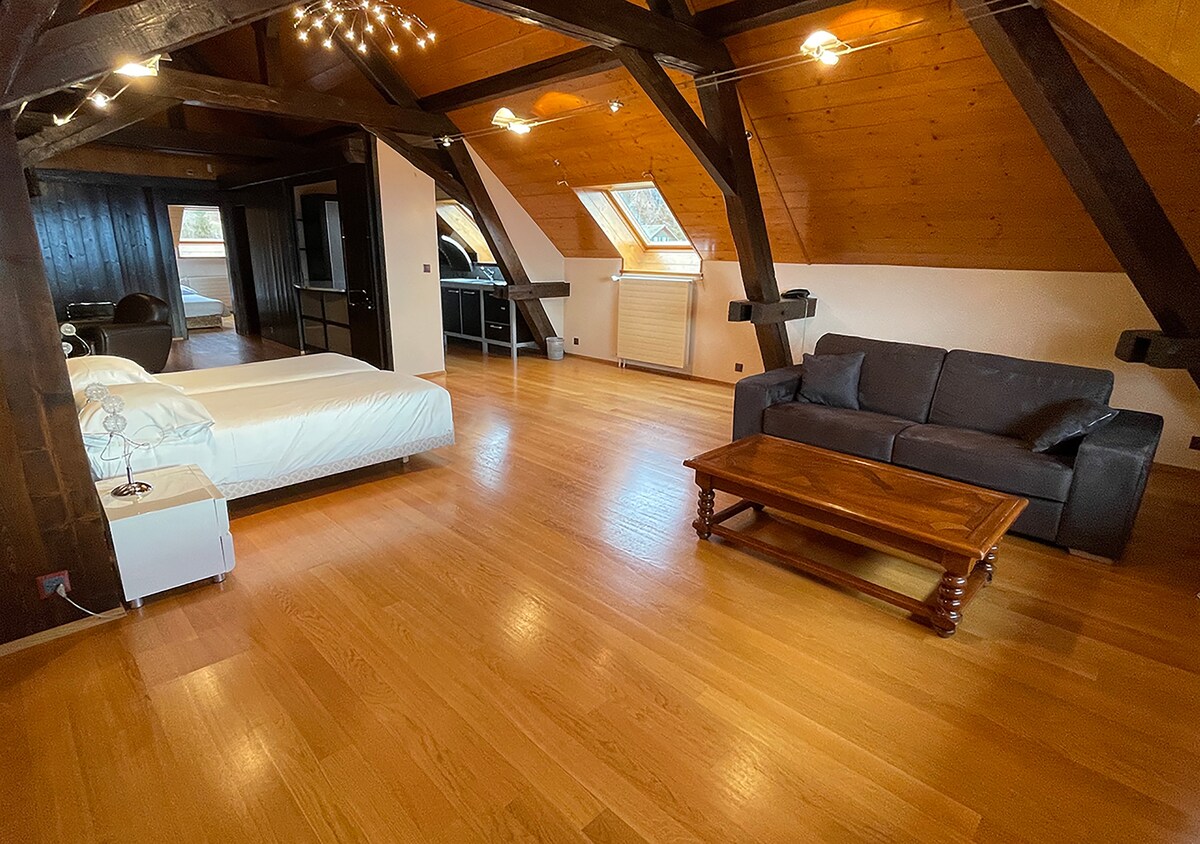 Sõbralik ja võluv magamistuba on väga ruumikas. Olenevalt saadavusest on majutuskohas kaheinimesevoodi või lai kaheinimesevoodi, varustatud kööginurk ja suur vannituba koos vanniga. See naudib suurepärast lõunapoolset orientatsiooni, kust avanevad imelised vaated Alpidele (ilma rõduta).