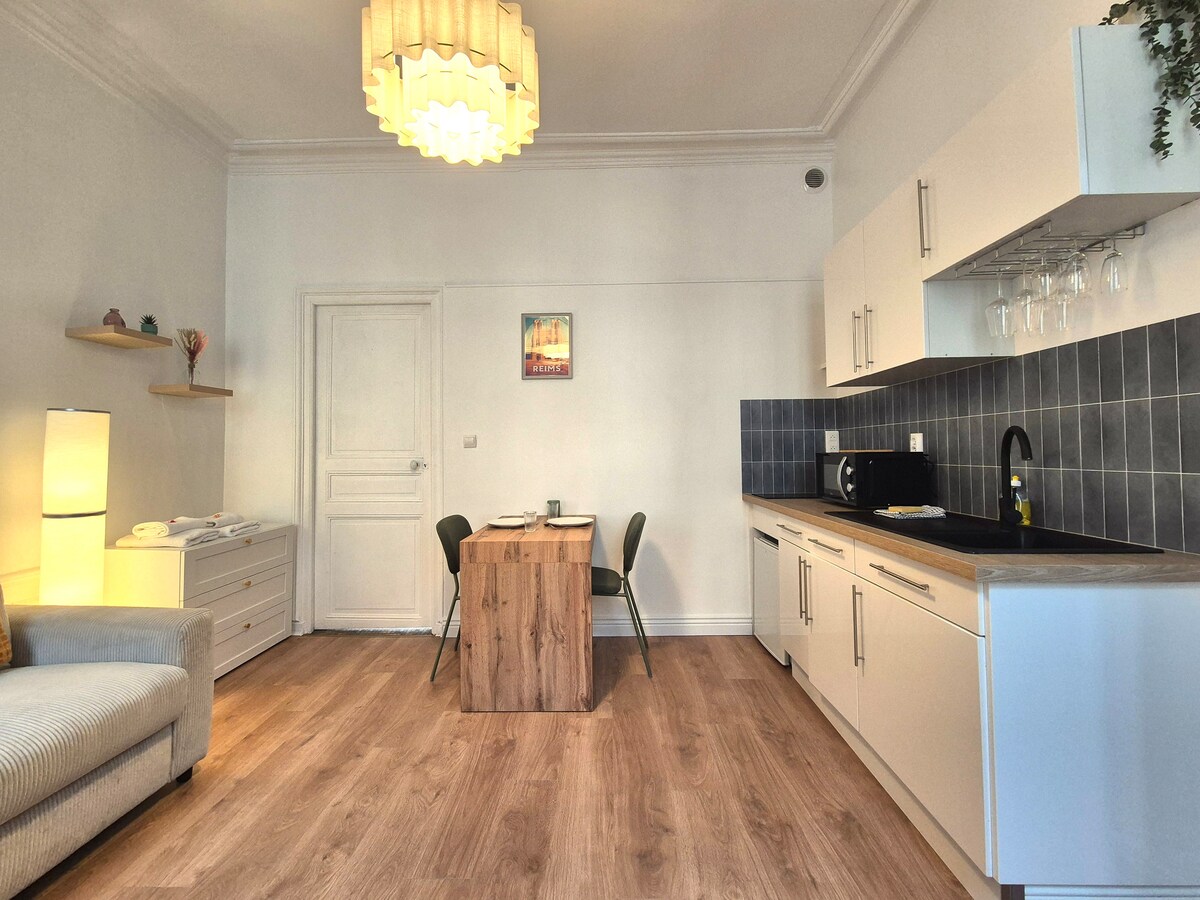 See 2024. aastal renoveeritud korter asub ajaloolise Saint-Rémi linnaosa südames, vähem kui 100 meetri kaugusel basiilikast ja pakub ideaalset asukohta. See on võrdse vahemaa (10-15-minutilise jalutuskäigu) kaugusel Reimsi kesklinnast ja kuulsast Maisons de Champagne 'ist (5-minutilise jalutuskäigu kaugusel), nagu Taittinger, Ruinart, Veuve Clicquot, Pommery ja G.H. Martel. Linna, selle poode ja peamisi vaatamisväärsusi saad hõlpsasti jalgsi avastada.