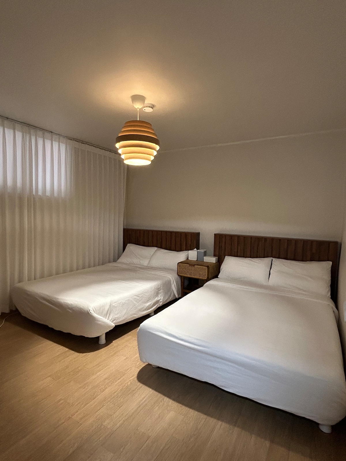 1. Inimeste arv/saabumine, lahkumine - Standardne inimeste arv on 2 inimest kuni 8 inimest, sealhulgas väikelapsed ja väikelapsed (Kontrolli inimeste arvu värava ees, CCTV-d kuritegevuse ennetamiseks) -Sisseregistreerimine 15:00/Lahkumine 11:00 2. Saadaolevad ruumid – Tasuta mullivanni kasutamine (30 000 KRW vähemalt ühe kasutuskorra eest) -3 tuba/2 vannituba (esimese korruse vannituba on kuiv, seega on saadaval ainult tualett-tarbed ja tualetid. Duši all käimiseks kasuta teise korruse vannituba) - Nutikas teler, kiirprojekt, Netflix saadaval - Mugavus (šampoon, palsam, kehapesu, vahupuhastus) 3. Parkimine - Parkimine on võimalik 1 auto puhul (väike/poolhiiresuurus) - Tasuta parkimine läheduses, avalikud parkimisjuhised 4. Muud ettevaatusabinõud - Olemas on mullivann/trepp. Palun järgi reegleid ja kasuta neid. Täpsusta, et külalised vastutavad ohutusjuhtumite eest. - Gwangan Naewol on kõigis ruumides suitsuvaba. - Külaliste arvu kontrollimiseks on paigaldatud turvakaamera. - Majutuskoha filmimine ilma eelneva konsultatsioonita on keelatud. Võta meiega ühendust. - Desinfitseerimine on põhjalik, kuid maja olemuse tõttu võib seal olla putukaid. Selle tõttu pole tagasimaksed lubatud.