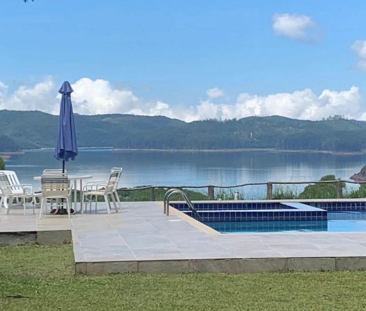 Relaxe na nossa chácara com acomodações para até 12 pessoas em 2 quartos e um mezanino Possui 1 banheiro com chuveiro na casa e outro sem chuveiro na churrasqueira Aqui tem: sala com lareira, internet, 2 smarts TV, churrasqueira, piscina adulta e infantil com prainha, campinho de futebol, quadra de tênis, rede de vôlei para grama ou piscina, cantinho da fogueira, playground para crianças e muito espaço para caminhar E uma vista incrível que vai trazer muita paz e tranquilidade para sua família