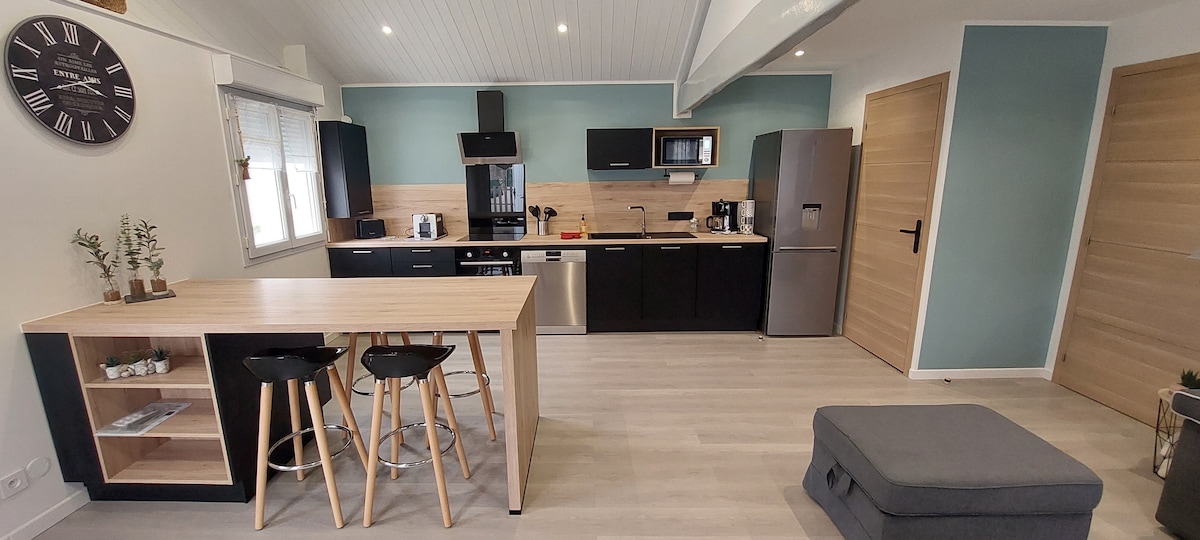 Lõõgastu selles vaikses ja stiilses majutuskohas: ~ Korteri tüüp T2, mis asub Dompierre-sur-Meri väikelinna südames (mõne minuti kaugusel La Rochelleist/Île de Rést autoga) ja jalgsi poodide lähedal (pagariäri, apteek, lihunik, turg...) lähedal ~ Koosneb suurest elutoast (elutuba/köök/söögituba), mugavast magamistoast, kus on avatud dušituba, eraldi tualett ja iseseisev sissepääs ~ Oleme endiselt kättesaadavad, et aidata sul peatumiseks valmistuda