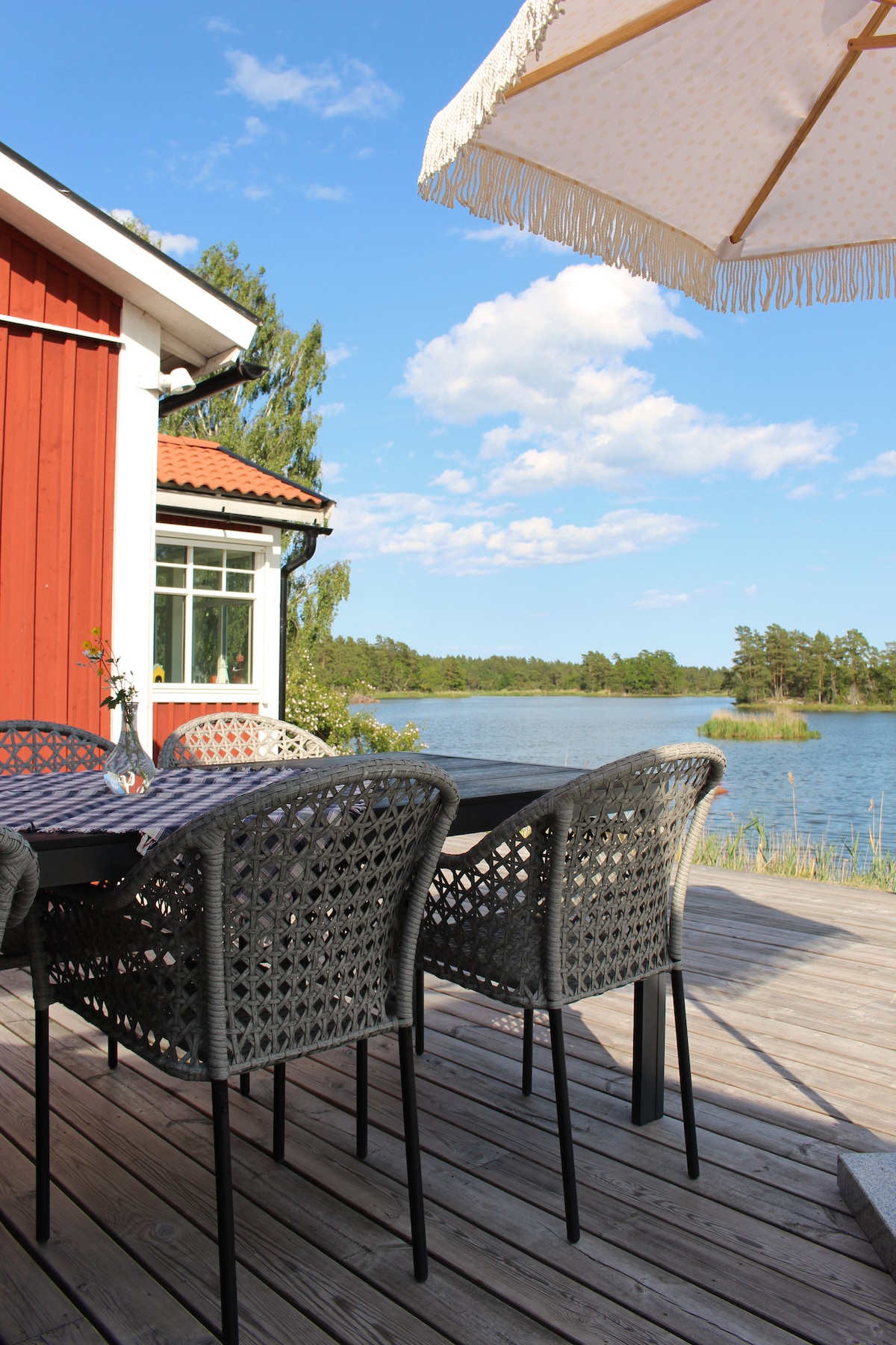 Genom en slingrig skogsväg kommer du till slut fram till destinationen, med havet som närmsta granne. Så fort du stänger av motorn på bilen och går ut genom bildörren så möter du det den härliga naturen, havet och tystnaden som bara en sån här plats kan ge. Här bor du bekvämt och fint i ett nyrenoverat enplanshus på 170 kvadratmeter med diverse bekvämligheter och med en enastående utsikt över skärgården kring Figeholm. Känn dig varmt välkommen till vårt smultronställe!