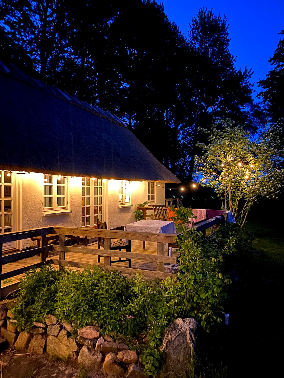 The house is a renovated farmhouse surrounded by meadows and small forests. The location at the end of a long dirt road with only a few neighbors gives you the feeling that you are all by your self. The water is 2-300 meters away and the sunsets by the sea are marvles. Pets are welcome - and there is a small horse available right next to the house.