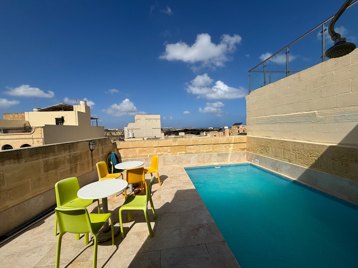 Põgene Gozo vaiksesse ümbrusesse meie esmaklassilises kolmekorruselises puhkemajas, kust avanevad vapustavad vaated Vahemerele ja päikeseloojangud eheda Gozitani küla kohal. Külalised naudivad imelise katuseterrassi privaatset kasutamist klaasist ääres basseini ja väligrill/söögitoaga. Disainerite sisustuses on täisvarustusega köök, 4K nutiteler, kliimaseade igas magamistoas ja WiFi. Rahulik asukoht on vaid 5-minutilise jalutuskäigu kaugusel San Blas Bay 'st ja 7-minutilise autosõidu kaugusel liivasest Ramla lahest.