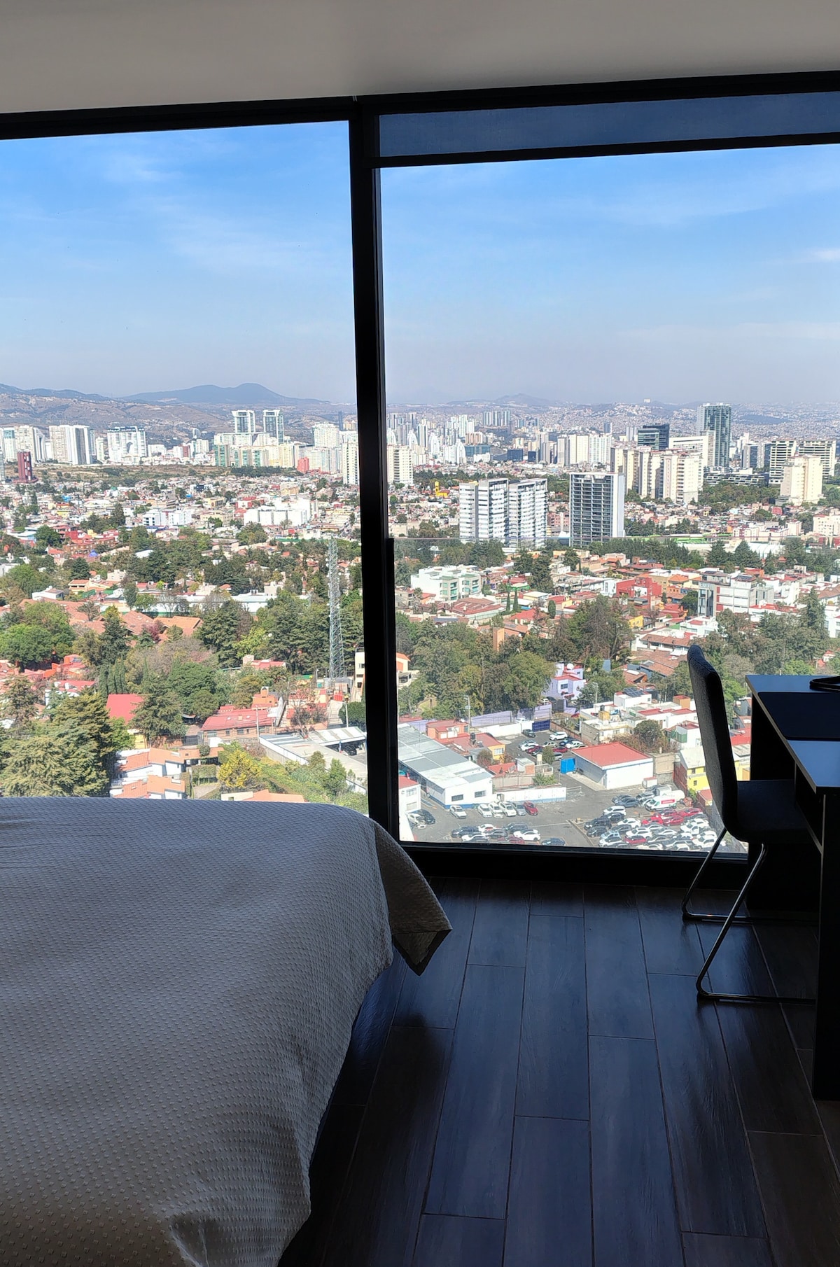 Täiskorter, ERITI LAI KAHEINIMESEVOODI, vannituba ja traadita wifi. Ilus vaade Santa Fele, söögituba, köök, mikrolaineahi, külmik, pesumasin, triikraud. Otse liftidega kaetud parkimine. Ööpäevaringne valve ja valve, jõusaal Siin tunned end nagu kodus, väga hubane koht, kus on olemas kõik, mida vajad oma peatumiseks. Väike supermarket PB-s, 2 rahvusvahelist ja Mehhiko restorani. Santa Fe kõrval, väga lähedal Interlimas, kaubanduskeskused, Ibero, Tec, mitu juurdepääsuteed.