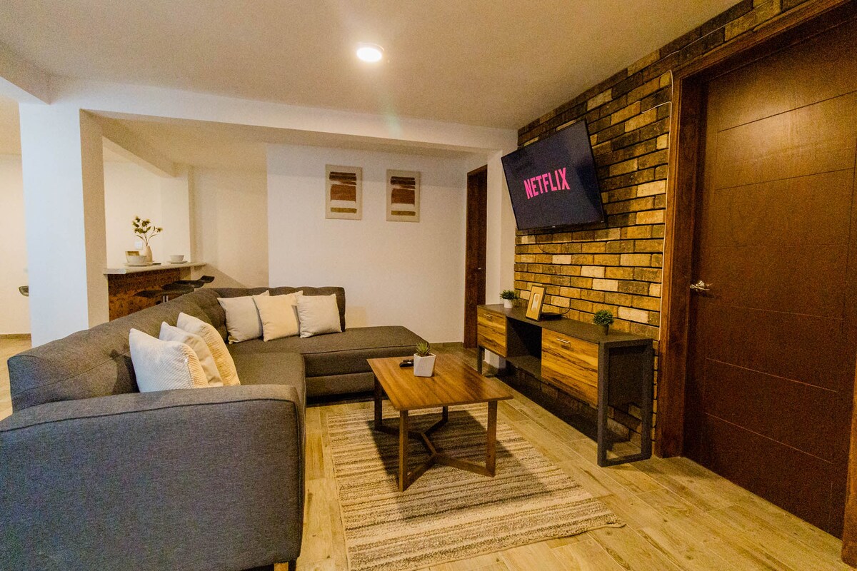 Naudi ainulaadset majutuskohta meie mugavas avatud kontseptsiooniga loftis, kust avaneb panoraamvaade Tolucale. Naudi ööpäevaringset videovalvet ja ületamatut asukohta - vaid viie kvartali kaugusel valitsuse paleest ja Plaza Molino kaubanduskeskuse kõrval. See on ideaalne koht töötamiseks, lõõgastumiseks või Toluca kesklinna avastamiseks, kus on mugav Plaza Molino otse hoones - seal on Starbucks, kino, restoranid, Oxxo, Smart Fit jõusaal ja palju muud.