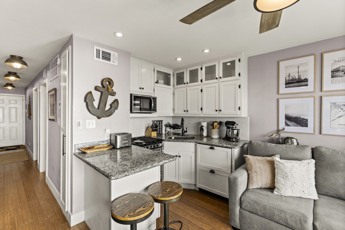 See 1 magamistoaga 1 vannituba ülemise korruse korter on ideaalne koht puhkamiseks sulle ja/või su lähedastele, sealhulgas karvastele sõpradele! Ükskõik, kas tuled talveks lõunasse (Snow Birds & Winter Texans welcome!), peatudes paar päeva enne kruiisi või romantilist puhkust - see üksus ei valmista pettumust! Täisköök ja kaheinimesevoodi diivan. Asub kaunis Maravilla Condos Seawall Blvd-s, kus on tipptasemel puhkekeskuse mugavused ja rand otse üle tänava majutuskohast.