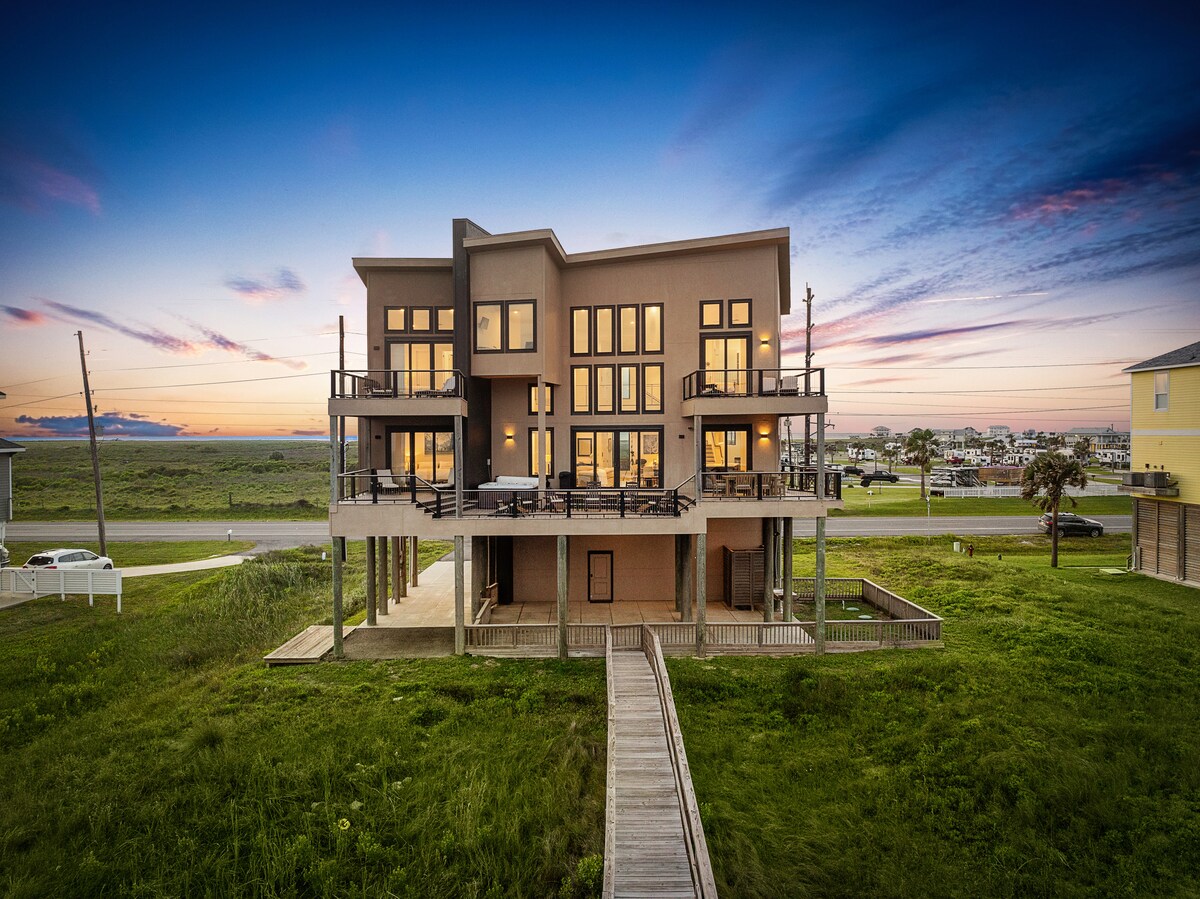 UUS rannakonstruktsioon! Tõeliselt ükssarvik:🦄 ASUKOHT, LUKSUS ja nii tore, et UUS! Asub sammu kaugusel Surfside 'i parimatest restoranidest ja rannast! Naudi maja all võrkkiike ja mänge. Roni trepist üles suurepärasele varjutatud terrassile, kust avaneb vaade San Luis Passist kuni sadamasillani! Rohkem kui 180-kraadine takistusteta vaade. Päikesekattele avatud magamistoad ja tähtede vaatamine tuleasemega 🔥 YouTube Beachfront Luxe video jaoks 125 $ koristustasu ja ainult 75 $ kokku kuni kaks lemmiklooma kogu peatumise eest!