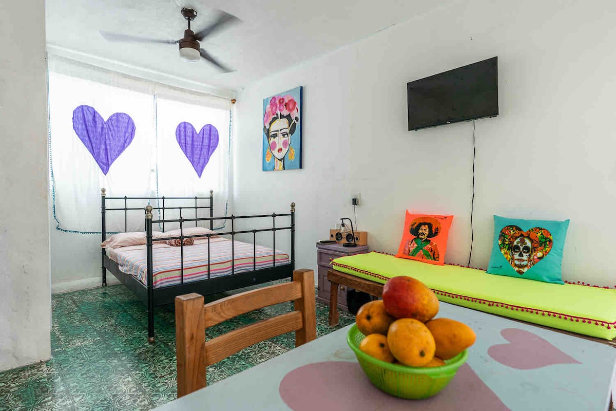 Inspireeriv Mehhiko stiilis sisekujundusega stuudio asub otse kõige keskel, poole kvartali kaugusel Maleconist ja rannast! Jalutuskäiku ja asukohta ei saa võita. Tule ja näe seda imelist Mehhiko kogemust. See koht sobib ideaalselt paarile, kuid seal on ruumi 4 inimesele. Elutoa diivan on täispuhutav ja sellest saab lai kaheinimesevoodi. Kaheinimesevoodi koos mäluvahu ja jahutusgeeliga paneb sind magama nagu beebi. Küsi minult!