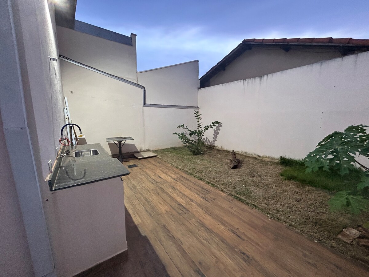 Este nosso novo espaço proporciona o estilo antigo com a modernidade atual. Trazendo elegância e conforto para os seus dias de descanço. Usamos a criatividade pra lhe proporcionar uma experiência perfeita. Aproveite sua estadia e sinta-se em casa! O espaço conta com TV smart com netflix gratuita, ferro de passar, liquidificador, sanduicheira, micro-ondas, 2 ventiladores de teto, secador de cabelo, galão de 10 litros de água potável, uma vaga na garagem. CONTÉM AR CONDICIONADO